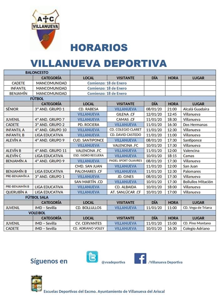 ➡️ Horarios de ésta semana de nuestros equipos de Fútbol, Fútbol Sala y Voley.