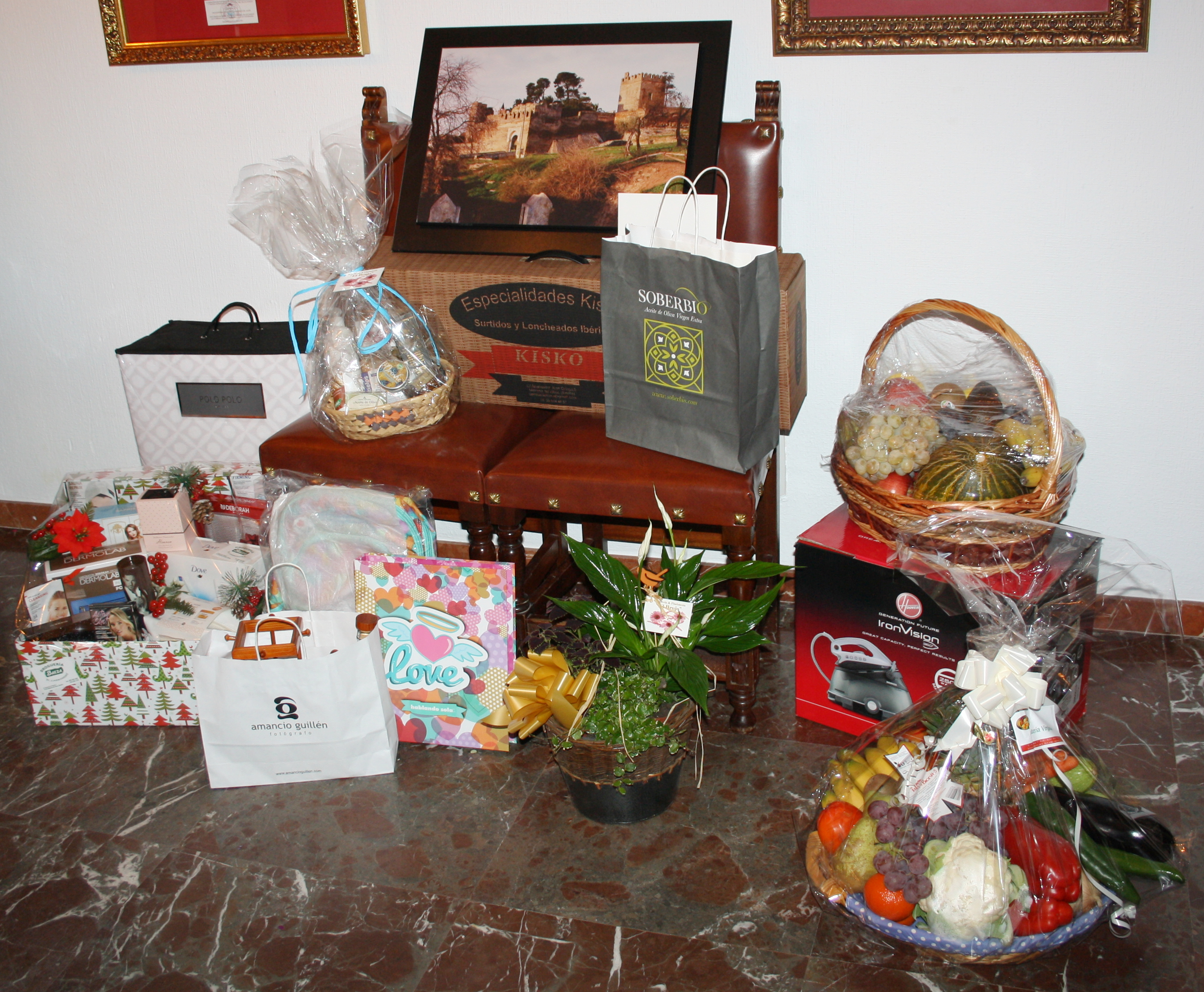 Entre los productos que conforman el lote para este primer premio se encuentran un pack de productos ibéricos, dos cestas de fruta, elementos de papelería, un centro de planchado o una sesión de fotos para niños.