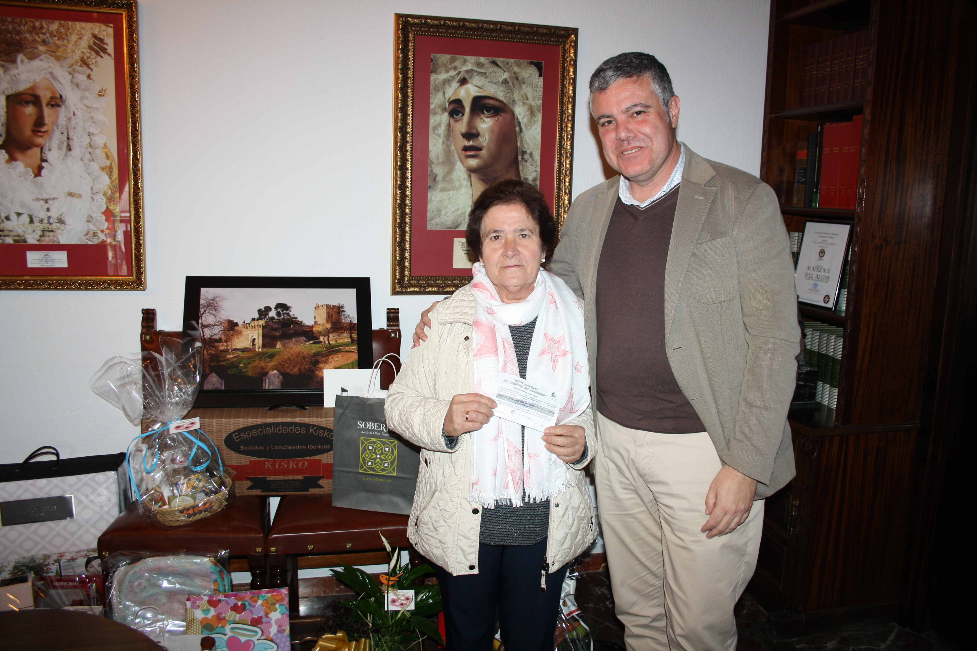La ganadora del primer premio ha sido Dolores López Jiménez, cuya papeleta adquirida por compras superiores a 20 euros en alguno de los establecimientos colaboradores ha coincidido con el primer premio en la Lotería del Niño. El lote de productos ha sido facilitado por comercios locales que se prestaron a colaborar con la iniciativa, entre ellos Carnicería Kisko, Frutería Zamorano, La Despensa de Rocío, Frutas Virginia, Mercería Elvi, Papelería Maria del Mar Gruillo, Momo, Estudio Fotográfico Amancio Guillén, Joyería Ojeda, Foto Damián, Droguería Baeza, Oleand S.C.A. (Aceite Soberbio), Semillería Floristería El Brujo y Electro Mauri.