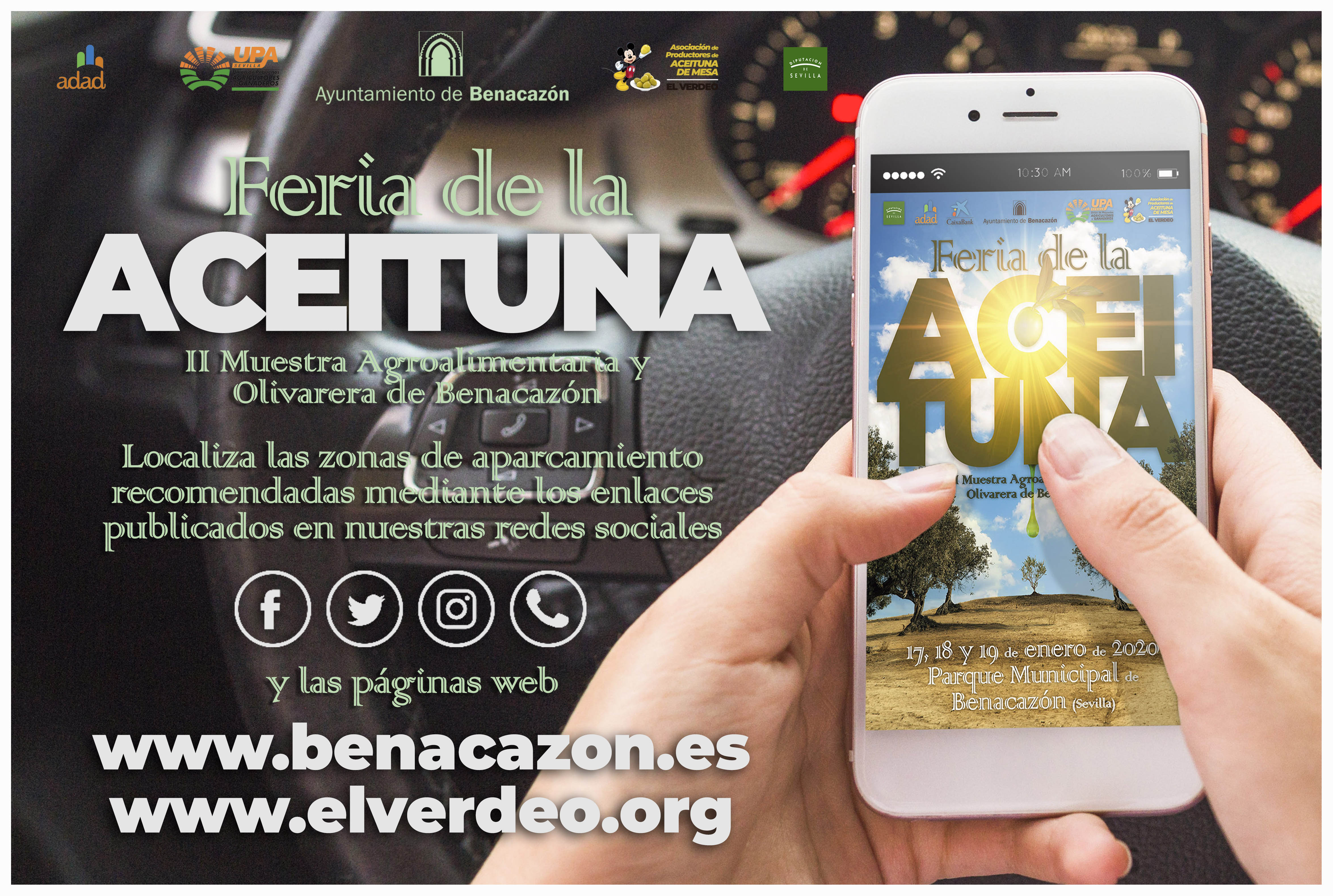 Desde el Ayuntamiento de Benacazón te informamos que, debido a las múltiples actividades alternativas que tendrán lugar en el exterior de la Caseta Polivalente del Parque Municipal durante la celebración de la Feria de la Aceituna, que tendrá lugar los días 17, 18 y 19 de enero de 2020, éste permanecerá cerrado al tráfico y al estacionamiento (exceptuando los vehículos de la organización).