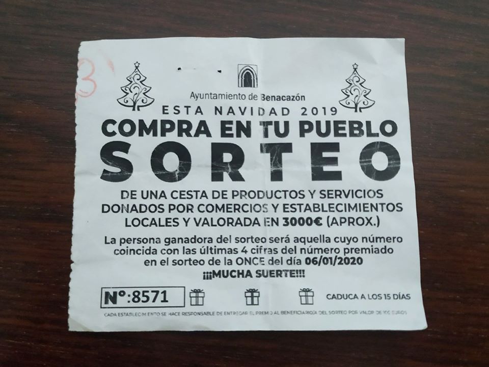 Desde el Ayuntamiento de Benacazón te informamos sobre la entrega del premio sorteado en la Campaña de apoyo al comercio local "Esta Navidad... Compra en tu pueblo", una iniciativa del Área municipal de Desarrollo Local coordinada con los negocios y comercios de Benacazón con el objetivo de mejorar el consumo en el pueblo en Navidad. La vecina Bernardina López, con la papeleta con el número 8571 entregada por el Kiosco Gisela, fue la ganadora de la magnífica cesta de productos y servicios valorada en alrededor de 3.000 euros.
