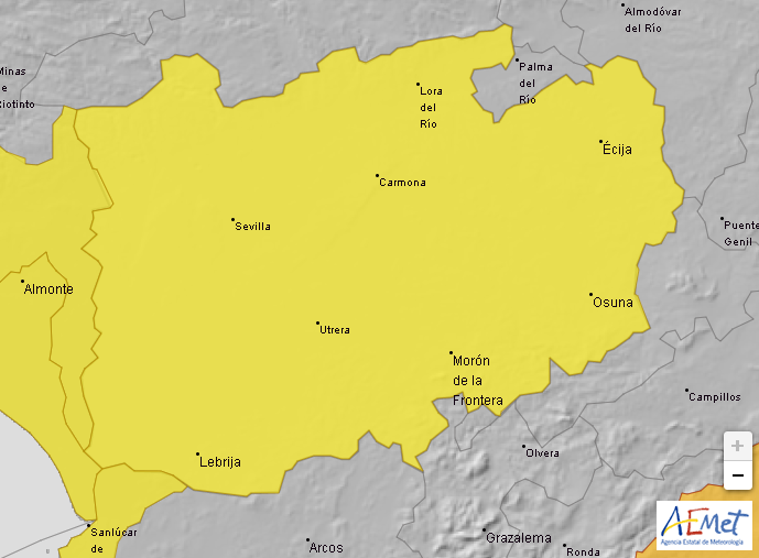 La Agencia Estatal de Meteorología activa hoy jueves el aviso de nivel amarillo, que significa riesgo, por precipitaciones en la campiña sevillana. En concreto, el aviso establece la hora de finalización a las 17.59 horas con una probabilidad del 40% - 70%.