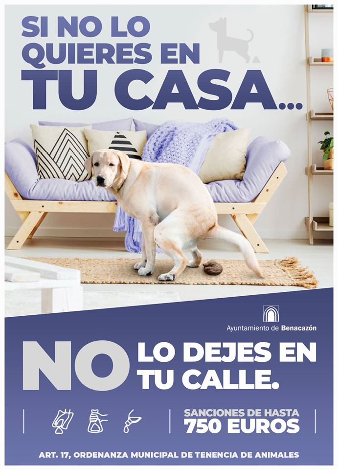 Desde el Ayuntamiento de Benacazón te informamos sobre la nueva campaña municipal, organizada por las Áreas de Comunicación y de Medio Ambiente, de concienciación para la recogida de excrementos caninos en la vía pública. Mediante el lema "Si no lo quieres en tu casa, no lo dejes en tu calle" se recuerda a los propietarios de animales que tienen la obligación de recoger las deposiciones para no ensuciar los espacios públicos.