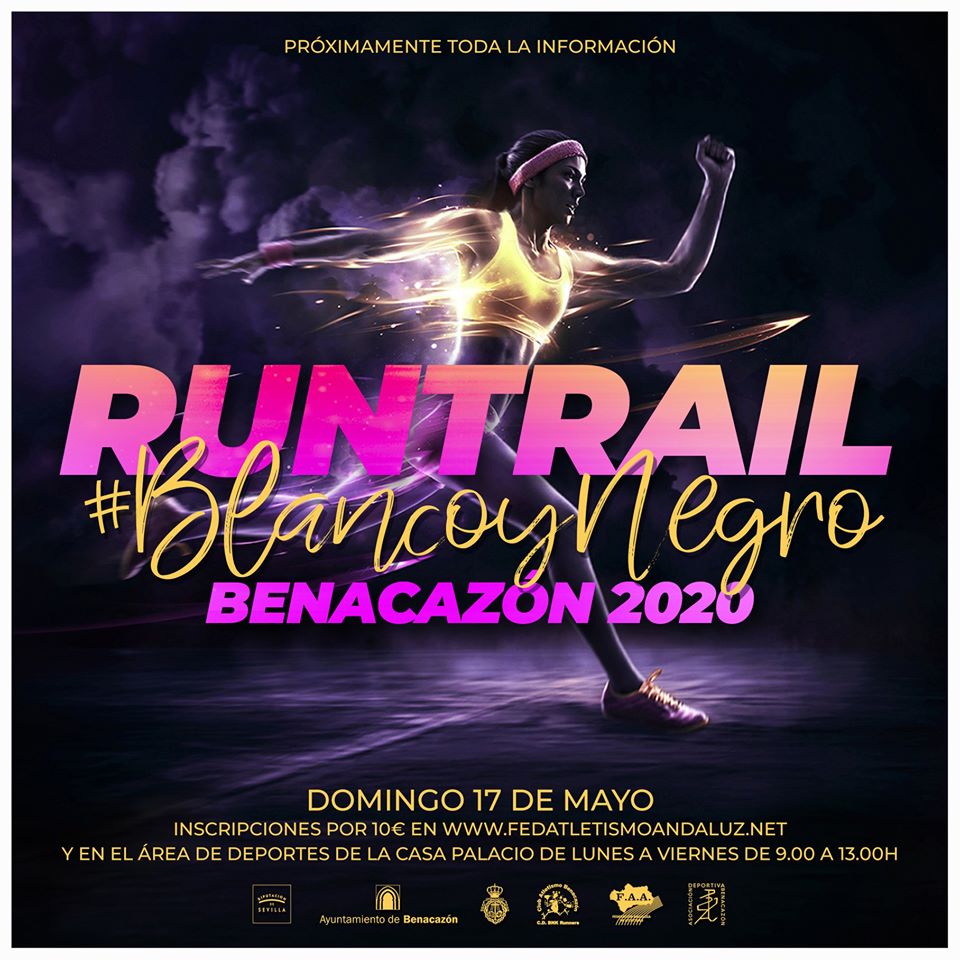 Desde el Ayuntamiento de Benacazón tenemos el placer de anunciarte que nuestro Área de Deportes, en coordinación con la Hermandad de la Soledad, la Diputación de Sevilla, la Federación Andaluza de Atletismo, el Club de Atletismo local C.D. BNK Runners y la Asociación Deportiva Benacazón, se encuentran inmersos en la organización de la "Runtrail #BlancoyNegro Benacazón 2020", una nueva propuesta que tendrá lugar el domingo 17 de mayo para hacer las delicias de los amantes de los desafíos deportivos en el entorno rural de nuestro municipio, durante la tradicional celebración de las Cruces de Mayo.