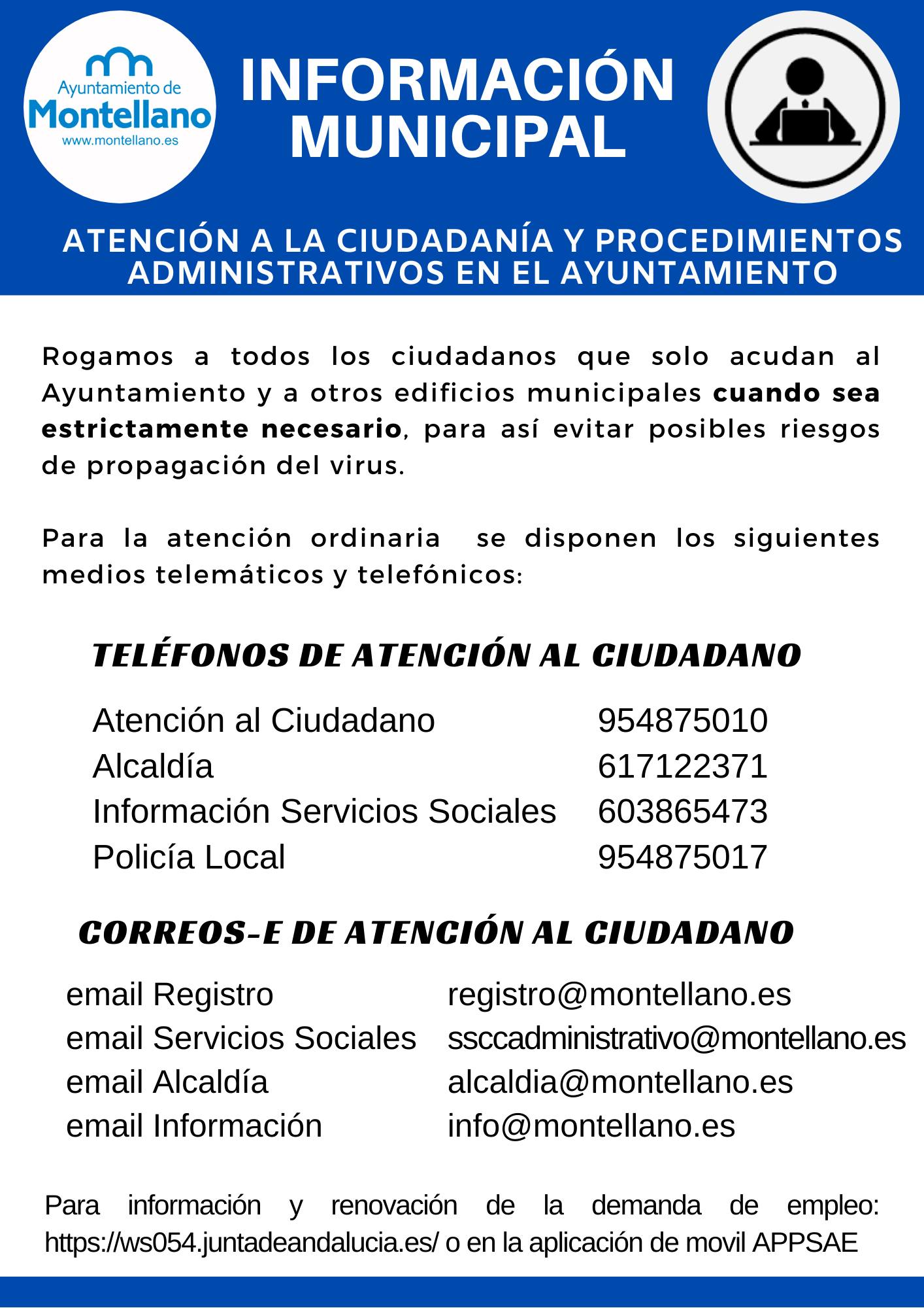 Rogamos a todos los ciudadanos que solo acudan al Ayuntamiento y a otros edificios municipales cuando sea estrictamente necesario, para así evitar posibles riesgos de propagación del virus.