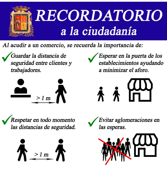El Ayuntamiento de Mairena del Alcor informa de las medidas a cumplir por todos los vecinos cuando acudan a un comercio.