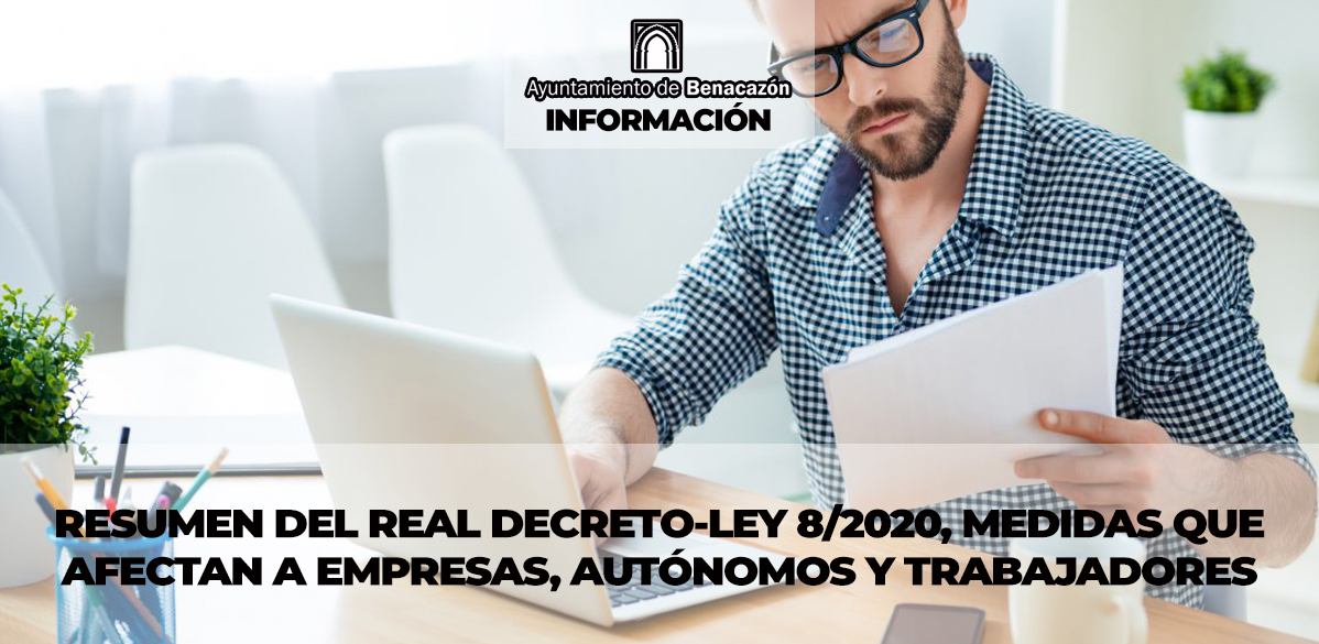 Este Real Decreto de 45 folios ha sido resumido lo máximo posible por nuestro Agente de Desarrollo de Local con el objetivo de simplificar y destacar la información relevante a Sociedades, Autónomos y trabajadores de nuestro pueblo. Este resumen es sólo a efectos informativos, no teniendo valor jurídico, ya que el texto es muy amplio y posee demasiadas connotaciones a tener en cuenta. Desde el Ayuntamiento de Benacazón esperamos que este documento sea de su utilidad.