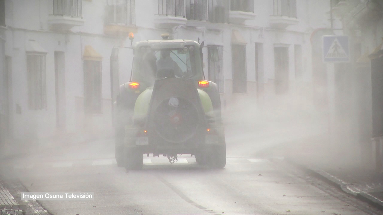 Desde las siete de la mañana de hoy jueves, 19 de marzo, se ha comenzado a desinfectar las calles de Osuna con dos tractores de agricultores pertenecientes a la Sociedad Cooperativa Olivarera Santa Teresa, entidad se ha ofrecido a llevar a cabo este trabajo para intensificar y ayudar en los servicios municipales de limpieza del Ayuntamiento de Osuna, poniendo a su disposición su maquinaria, sus recursos materiales y humanos en la lucha contra la propagación del coronavirus, así como otros agricultores particulares de la localidad y empresas de servicio de agricultura.