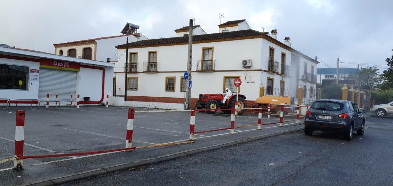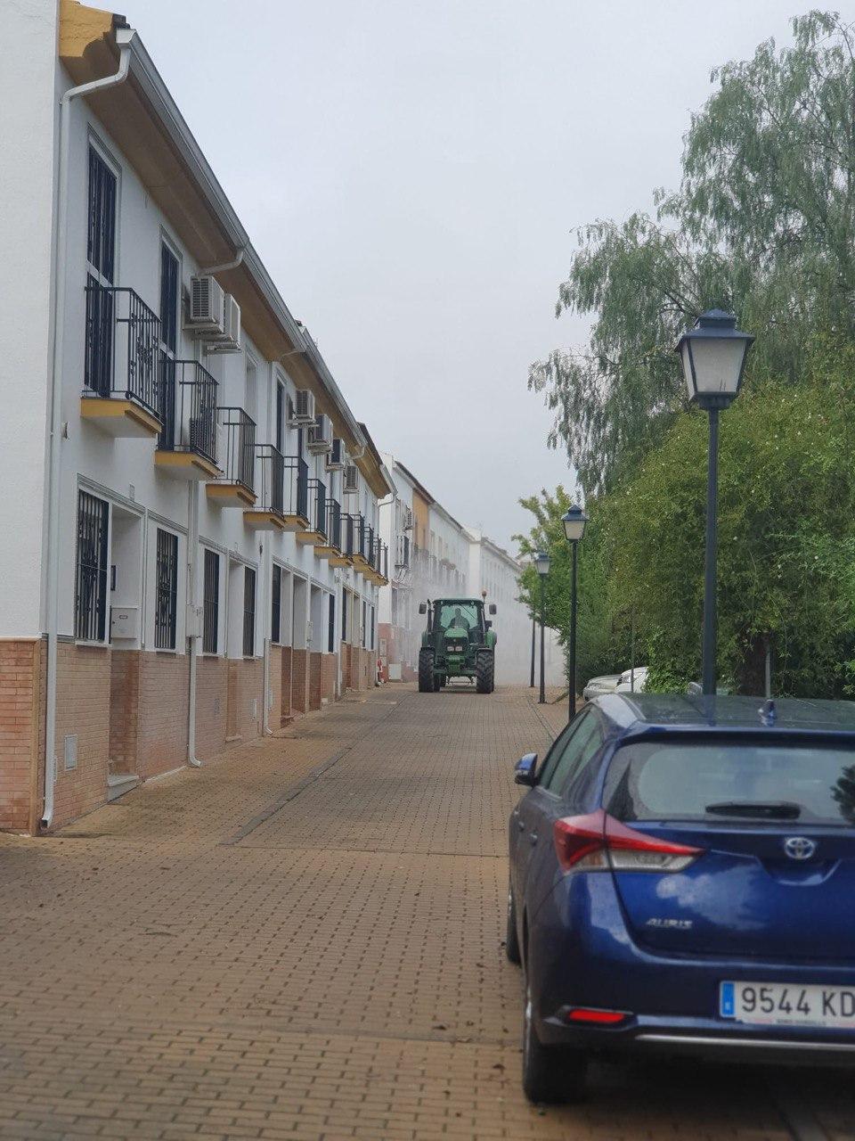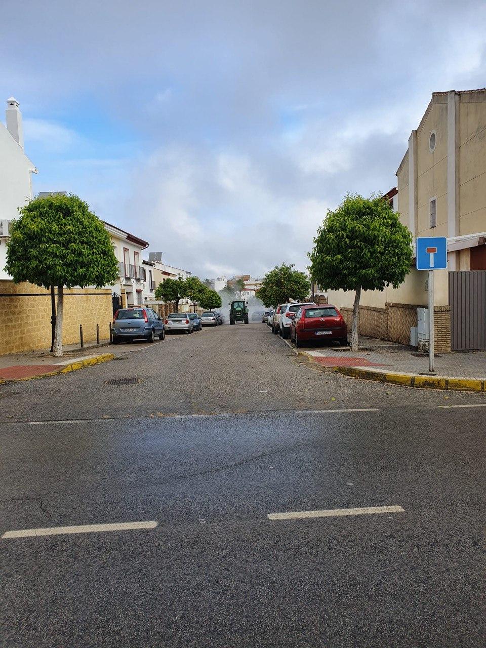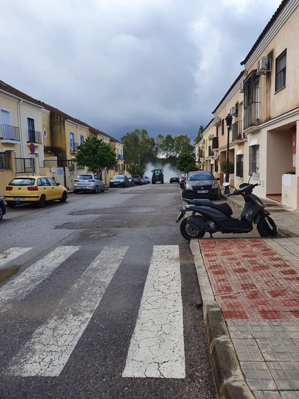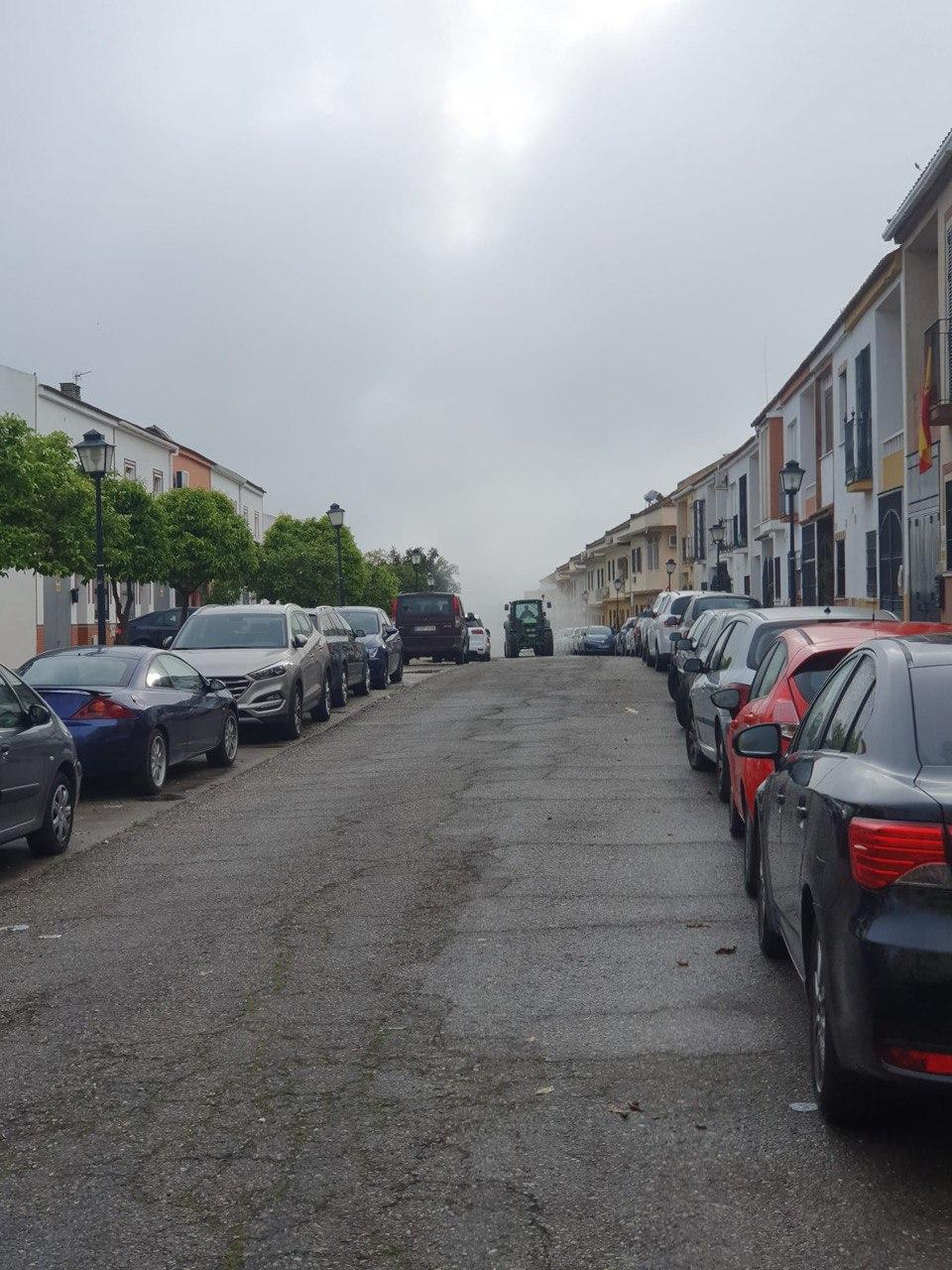 Durante la mañana del domingo, cuatro tractores de agricultores de Santiponce, han desinfectado las calles de nuestro pueblo vertiendo más de 15.000 litros de desinfectante, los tractores han llegado casi al cien por cien de las calles de Santiponce.