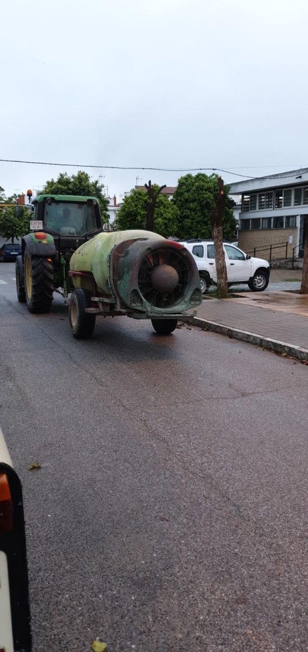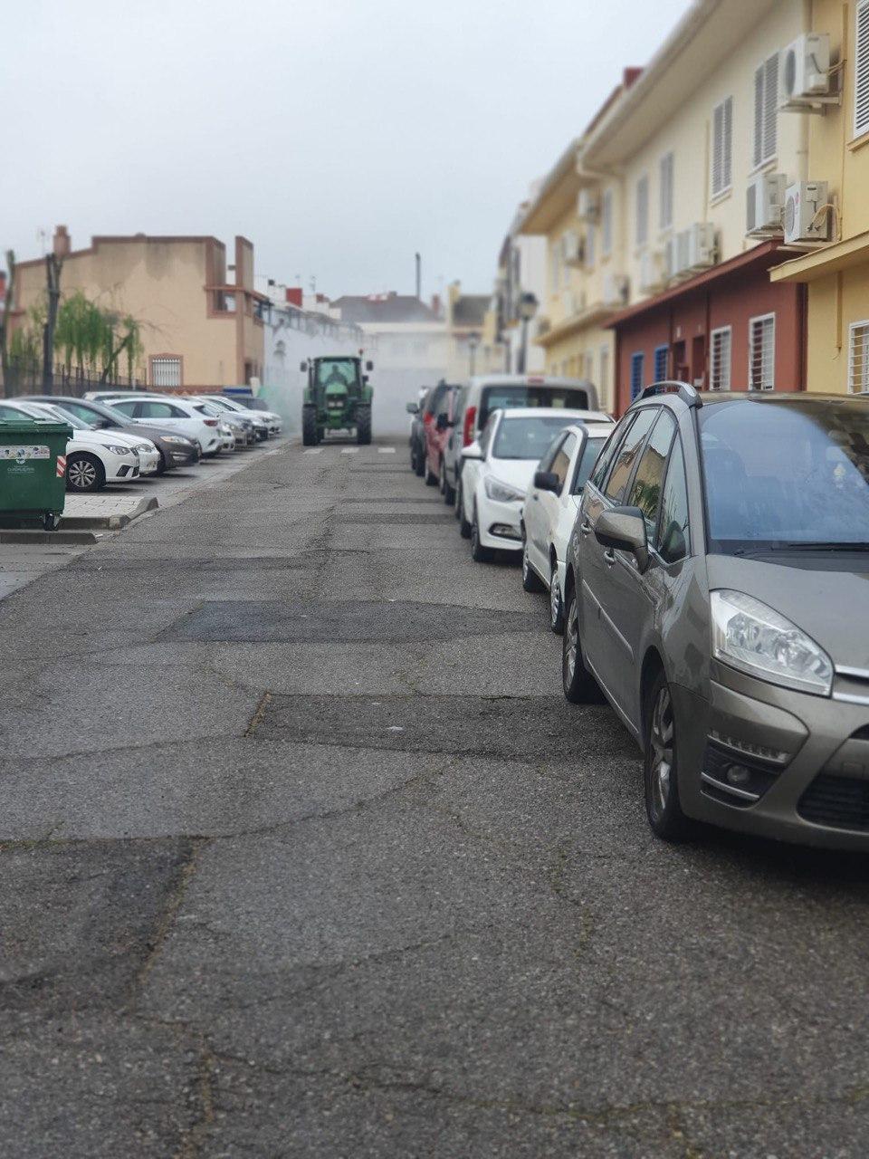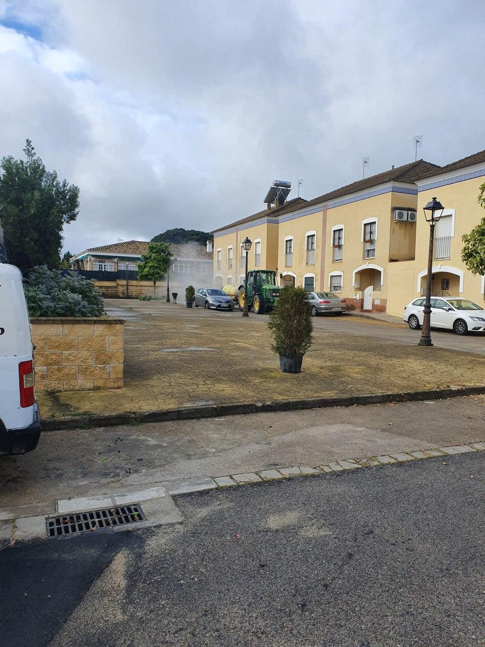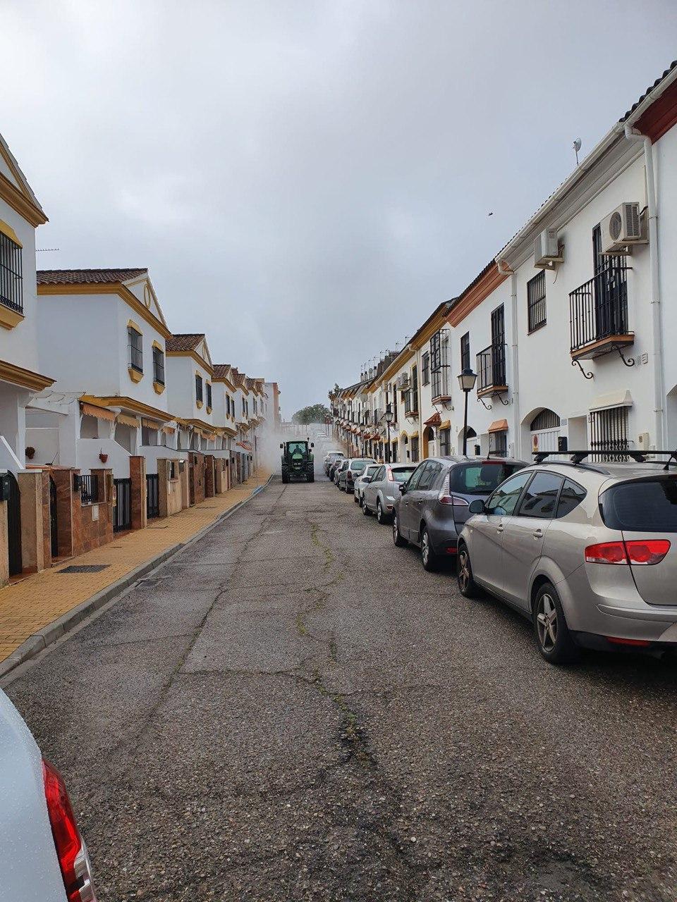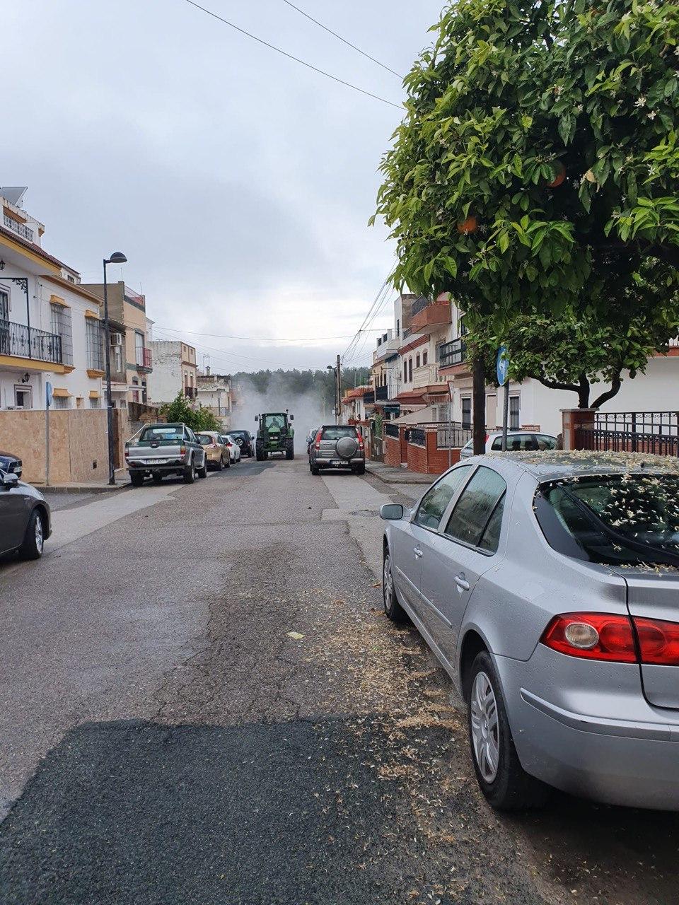Durante la mañana del domingo, cuatro tractores de agricultores de Santiponce, han desinfectado las calles de nuestro pueblo vertiendo más de 15.000 litros de desinfectante, los tractores han llegado casi al cien por cien de las calles de Santiponce.