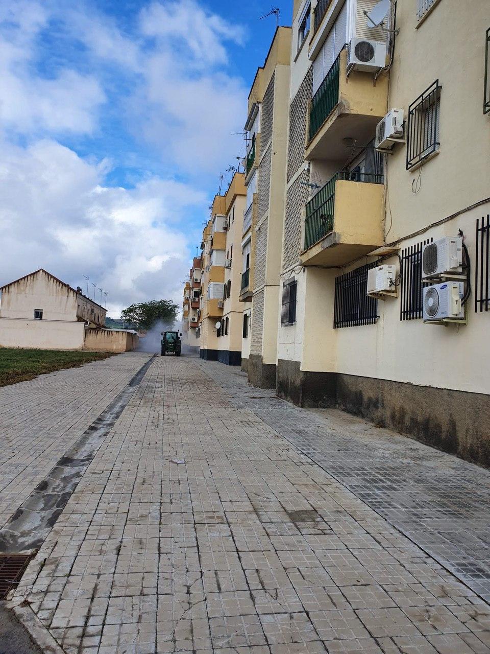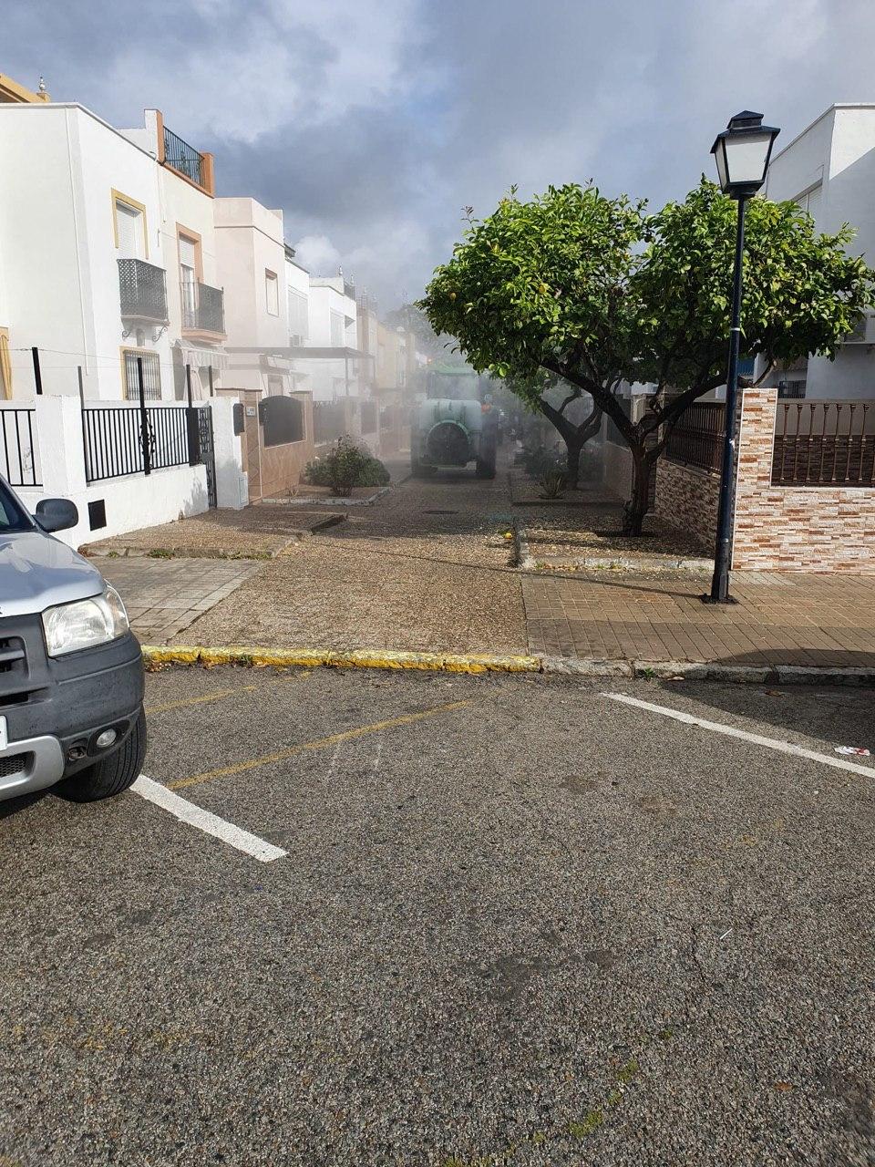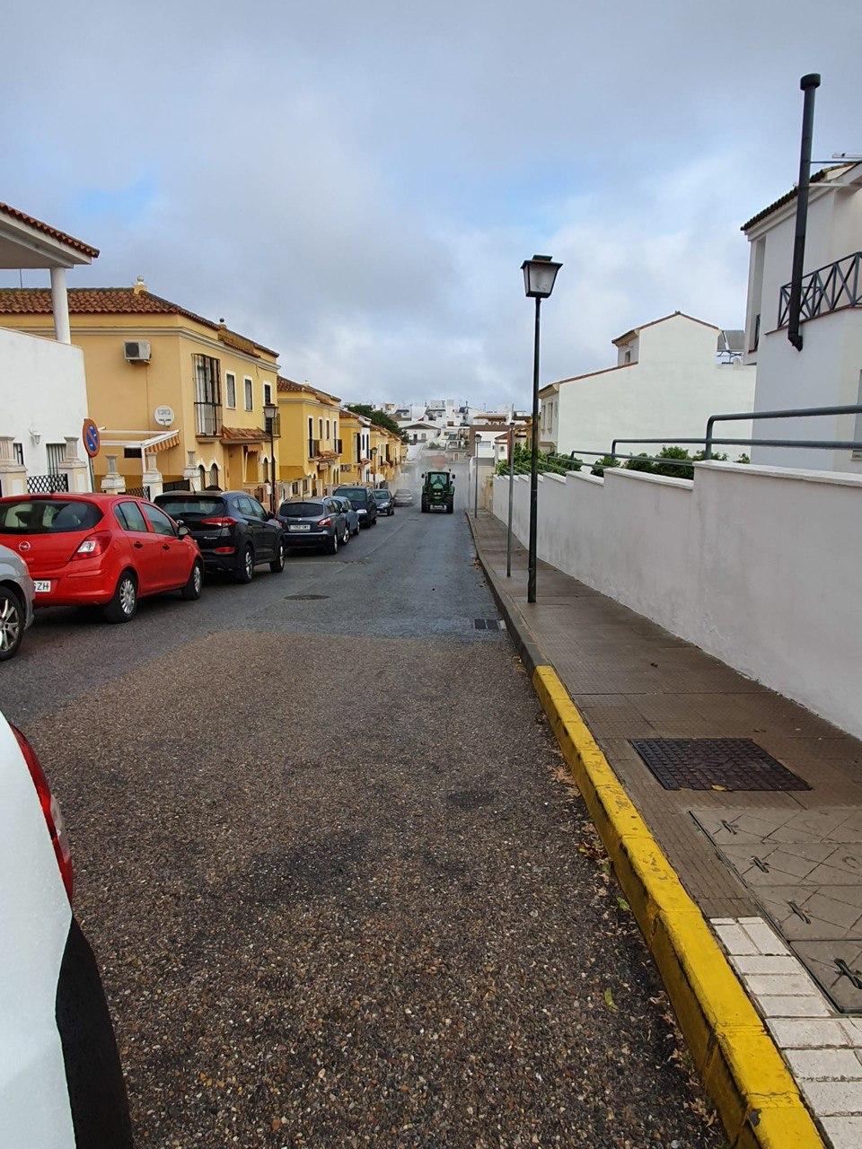 El Ayuntamiento de Santiponce, continuará con medios propios, las labores de desinfección por las zonas donde las dimensiones de la calle han impedido que los equipos pudiesen entrar y reforzando el trabajo de hoy.