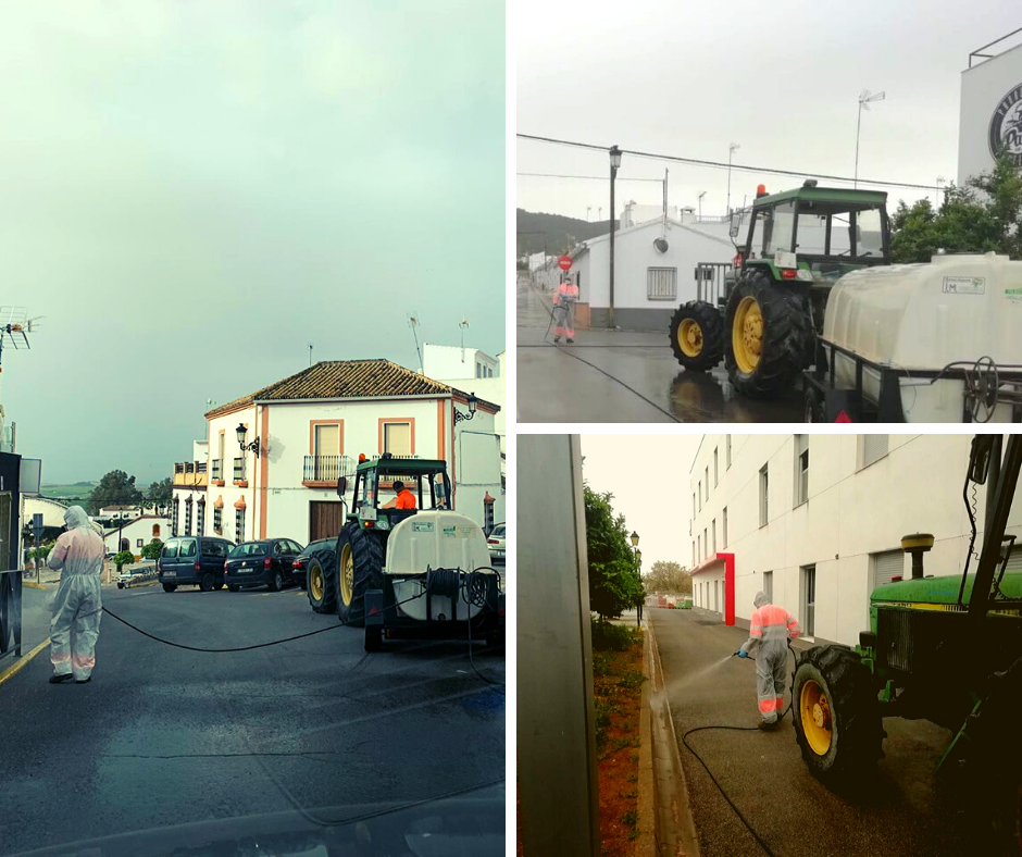 Varias empresas de la localidad del sector de fumigación, agricultores y la Cooperativa de Montellano, se han puesto a disposición del Ayuntamiento para realizar labores de desinfección con hiplocorito sódico de manera voluntaria por las calles de Montellano y así ayudar a prevenir el COVID-19. Por ello, mañana se mantendrá una reunión con todas estas empresas para coordinar las labores de desinfección por todas las calles de Montellano.