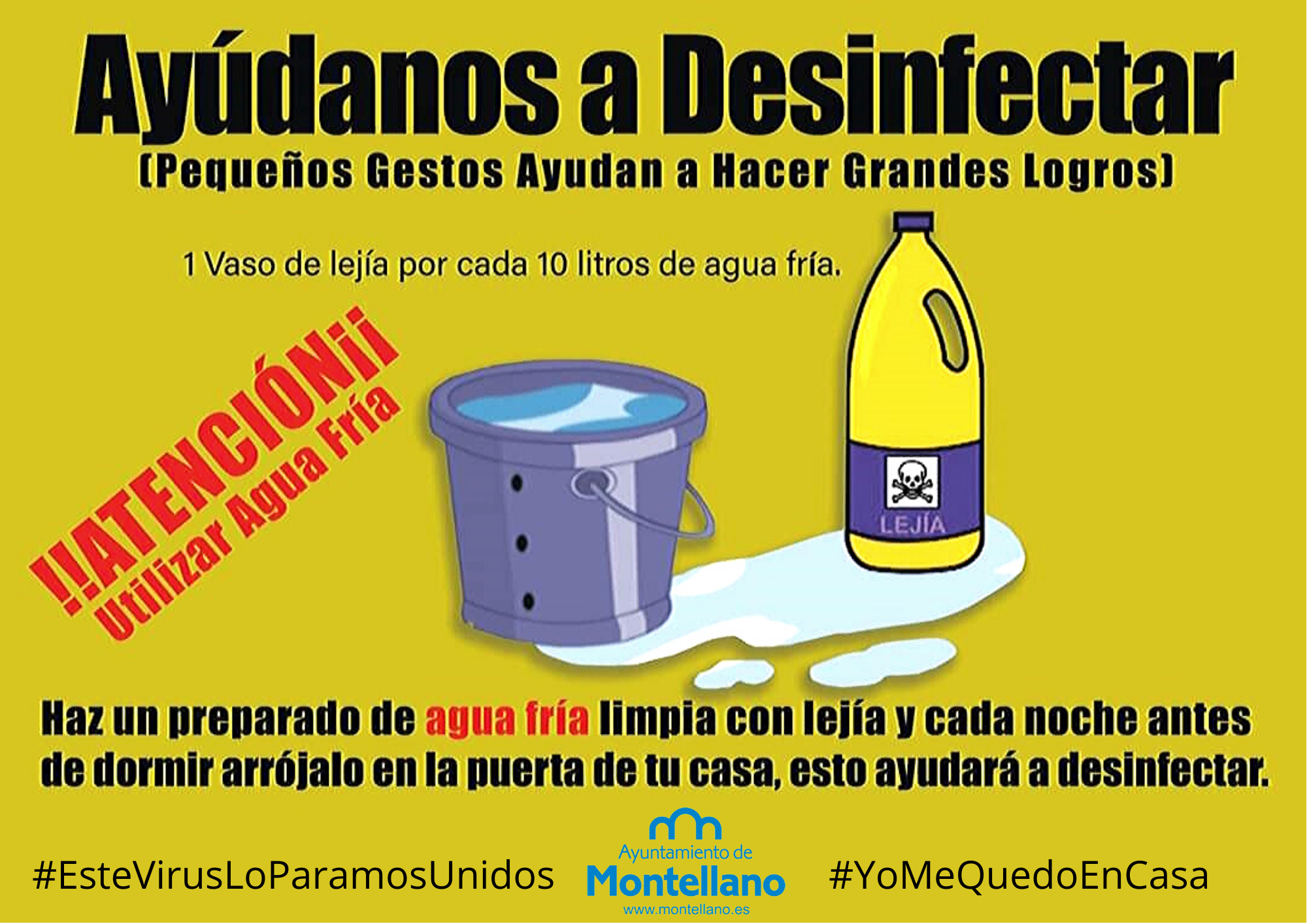 Así mismo, también se solicita la colaboración a todos los vecinos y vecinas para que de manera voluntaria depositen en sus calles preparados de agua fría con lejía cada noche antes de dormir, un acto de solidaridad que también ayuda a desinfectar.