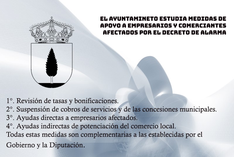 El Ayuntamiento está estudiando aplicar medidas dirigidas a empresarios y autónomos afectados por el decreto de alarma. Entre esas medidas podemos destacar las siguientes: