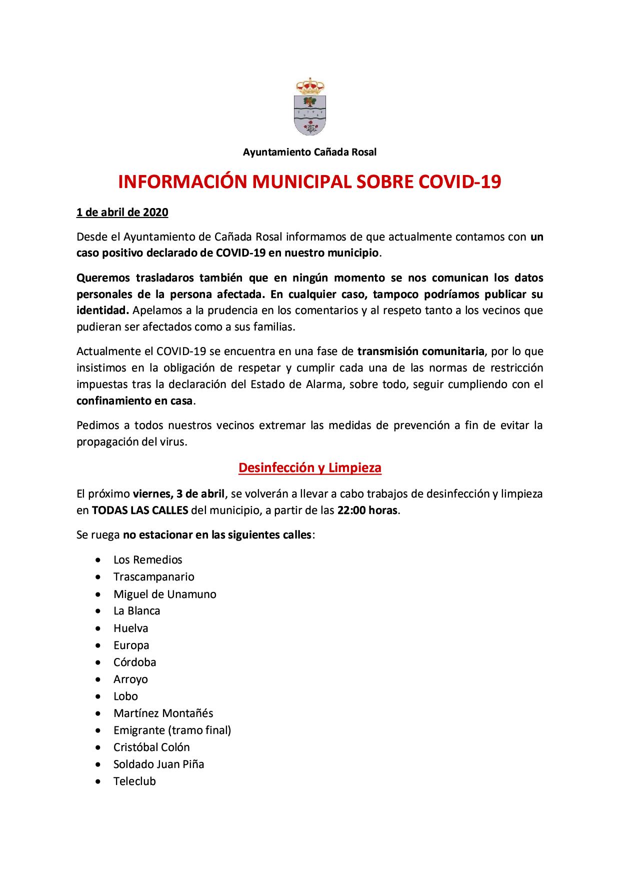 Imagen Imágenes Ubicación Categoría noticia COVID-19 Mostrar en el carrusel de la sección Sí Fecha Jue, 02/04/2020 - 11:05 Más información http://www.canadarosal.es/es/actualidad/noticias/INFORMACION-MUNICIPAL-SOBRE-CO…