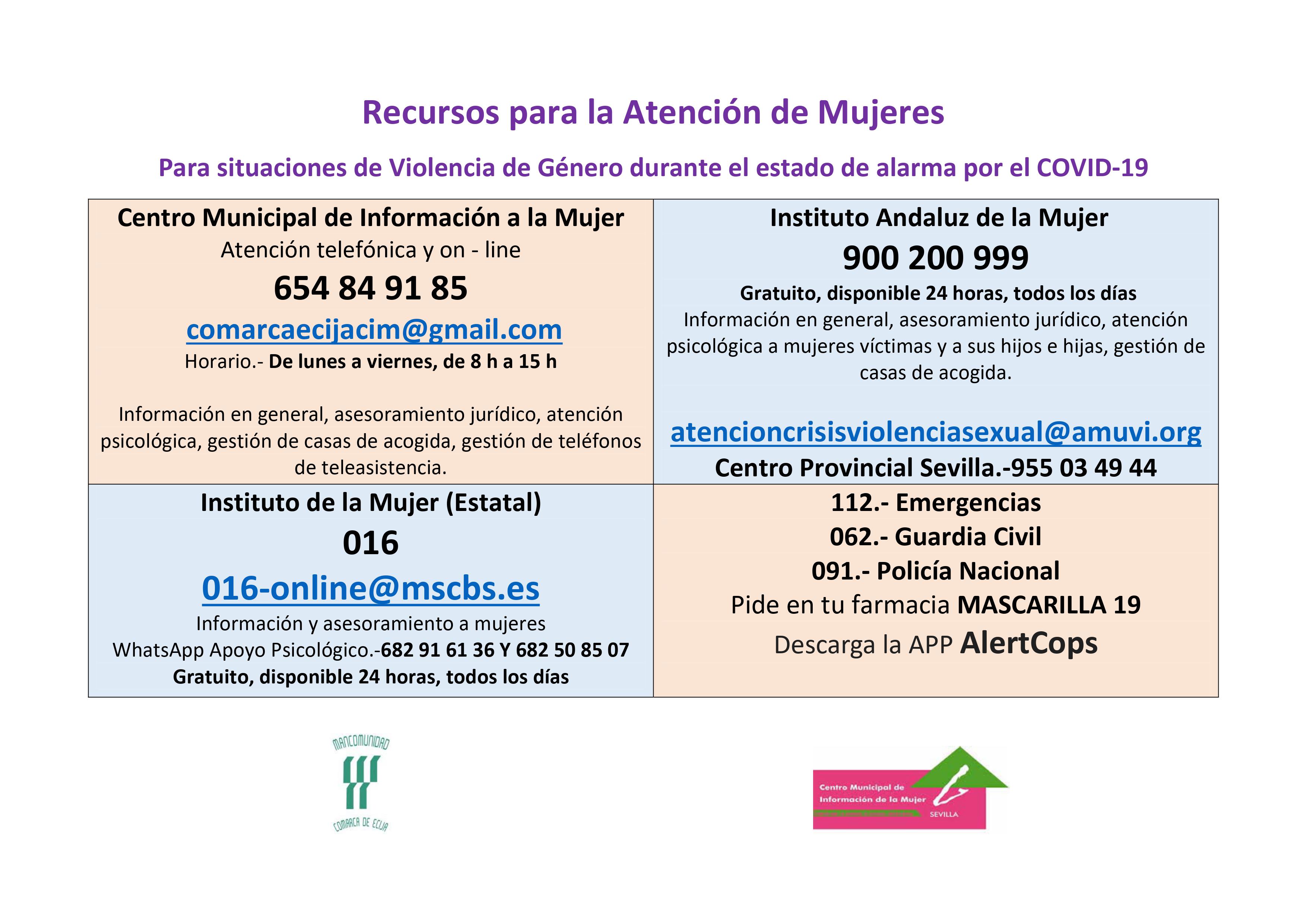 Desde el Centro Municipal de Información a la Mujer de la Mancomunidad de Municipios de la Comarca de Écija seguimos atendiendo a las mujeres de nuestros pueblos. Tanto la Informadora como la Psicóloga y el Asesor Jurídico se han acogido a la modalidad de teletrabajo, puedes contactar con el CMIM