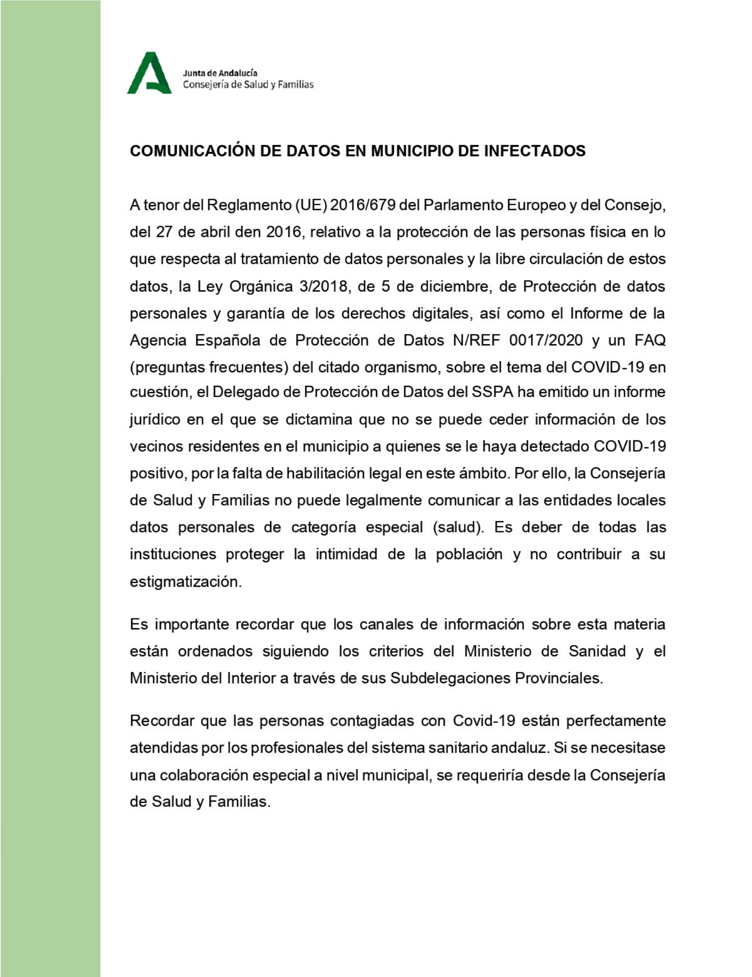 Tras los requerimientos enviados por el Ayuntamiento de Montellano a las distintas Administraciones Públicas solicitando el número de contagiados por coronavirus en nuestro pueblo, nos han contestado con el siguiente comunicado que adjuntamos en la imagen.