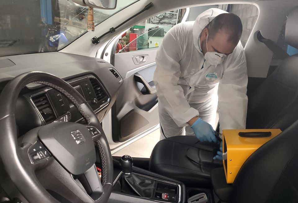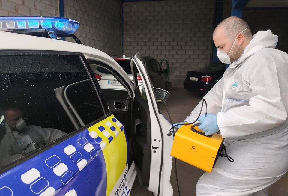 Desde el Ayuntamiento de Benacazón te informamos que hace unos días se realizaron nuevas labores de desinfección en los vehículos de la Policía Local mediante ozono, un tratamiento especialmente eficaz en el control microbiológico de ambientes cerrados con riesgo de infección por Coronavirus. La Alcaldesa Juana Mª Carmona, el Concejal de Seguridad Ciudadana, Fco. Bernal, y agentes de la Policía Local estuvieron presentes mientras Solimar Servicios, la empresa local que está llevando a cabo estas labores de manera voluntaria y altruista, realizaba el tratamiento.