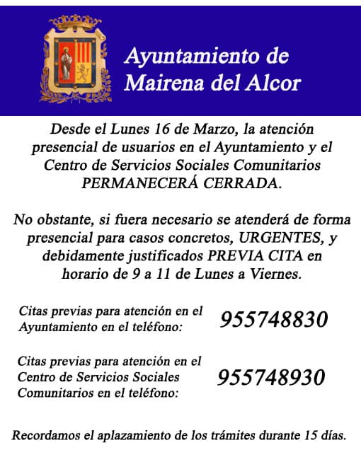 Imagen Imágenes Ubicación Categoría noticia Noticias Generales Mostrar en el carrusel de la sección No Fecha Mié, 29/04/2020 - 15:05 Más información http://www.mairenadelalcor.es/es/actualidad/noticias/TELEFONOS-DE-INTERES/