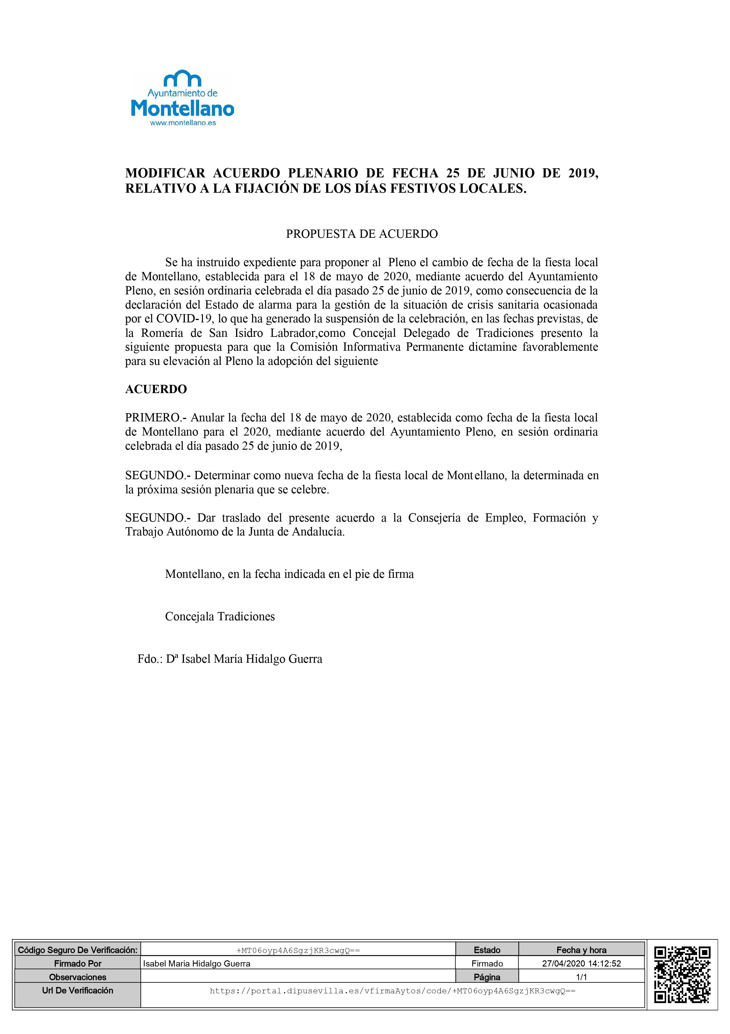 En dicha sesión se acordó determinar la nueva fecha de festivo local en el próximo Pleno Ordinario.