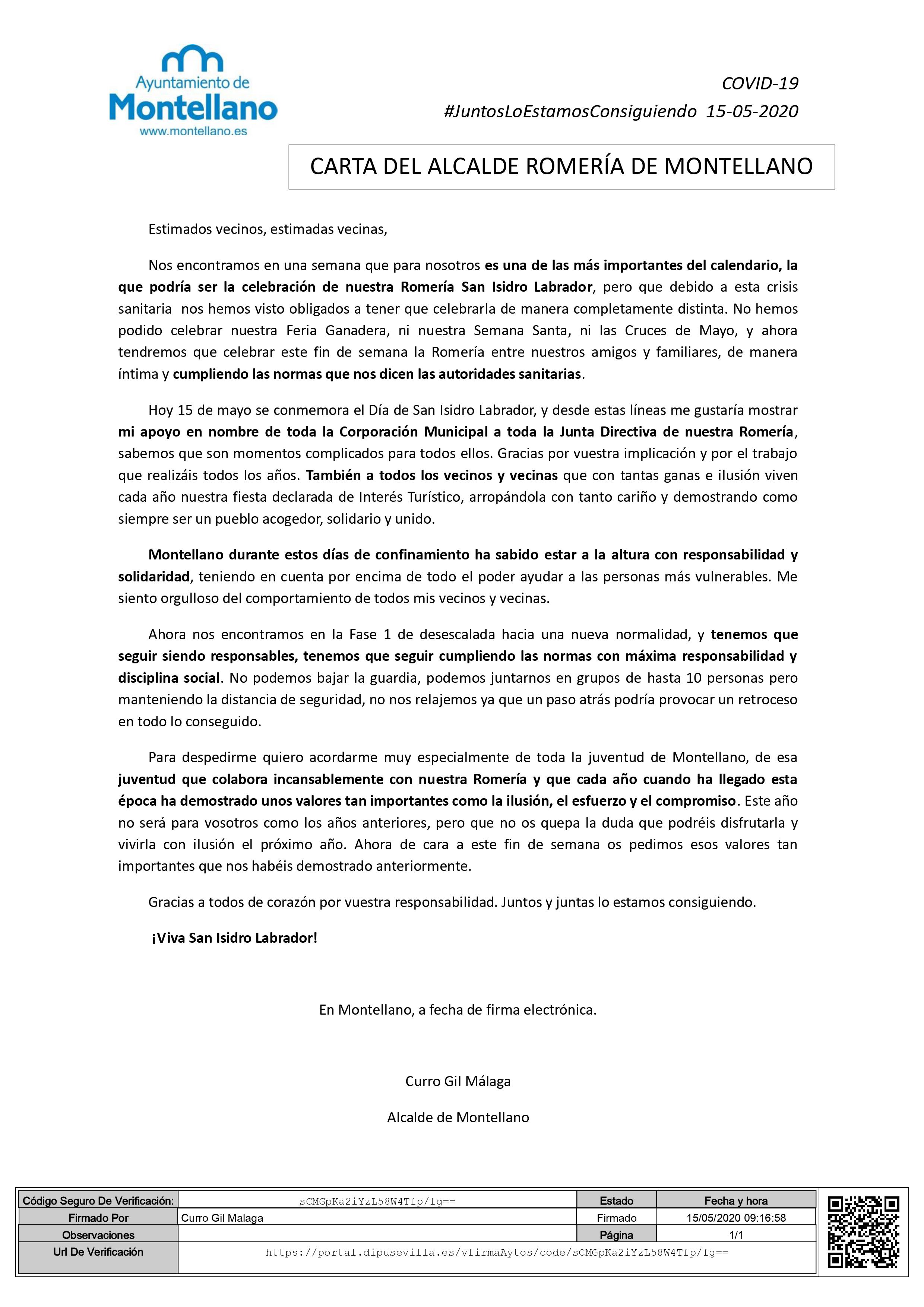 En Montellano, a 15 de mayo de 2020.