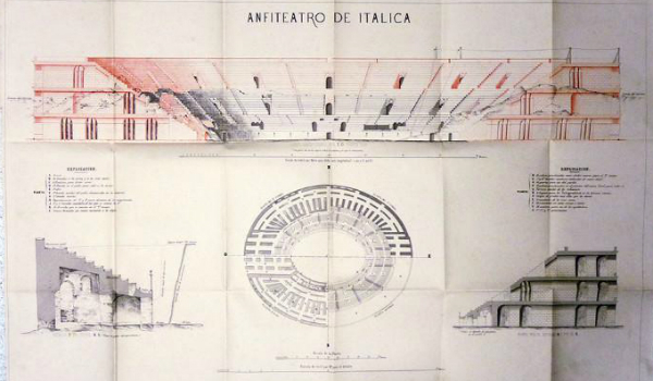 Diseñó una propuesta de reconstrucción de la planta, los alzados y las secciones del edificio fundamentada en los cortes arqueológicos que fue realizando en él. Sus primeros resultados fueron publicados en Memoria arqueológico-descriptiva del Anfiteatro de Itálica16, primera monografía dedicada expresamente al anfiteatro italicense, año 1862, en la que se recoge la confección del primer plano topográfico del conjunto.