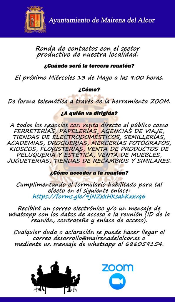 Clic en este enlace para solicitar participar en la reunión telemática a través de la plataforma Zoom o mediante correo electrónico escribiendo a desarrollo@mairenadelalcor.es