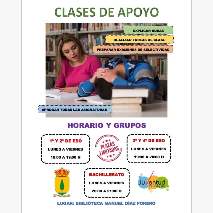 A partir de hoy retomamos las clases de apoyo, con el objetivo de dar a aquellos adolescentes ayuda con los deberes o a estudiar los últimos exámenes ✏ para terminar el curso satisfactoriamente.