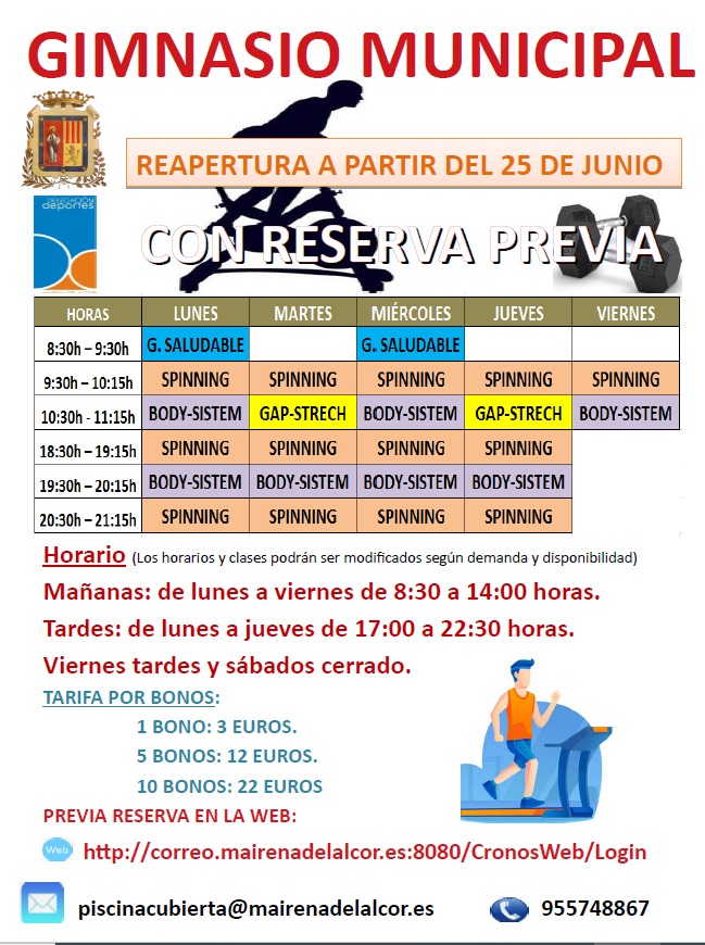 La Delegación de Deportes anuncia la reapertura del gimnasio municipal que será a partir de este jueves 25 de junio, y ultima las medidas para su reapertura:
