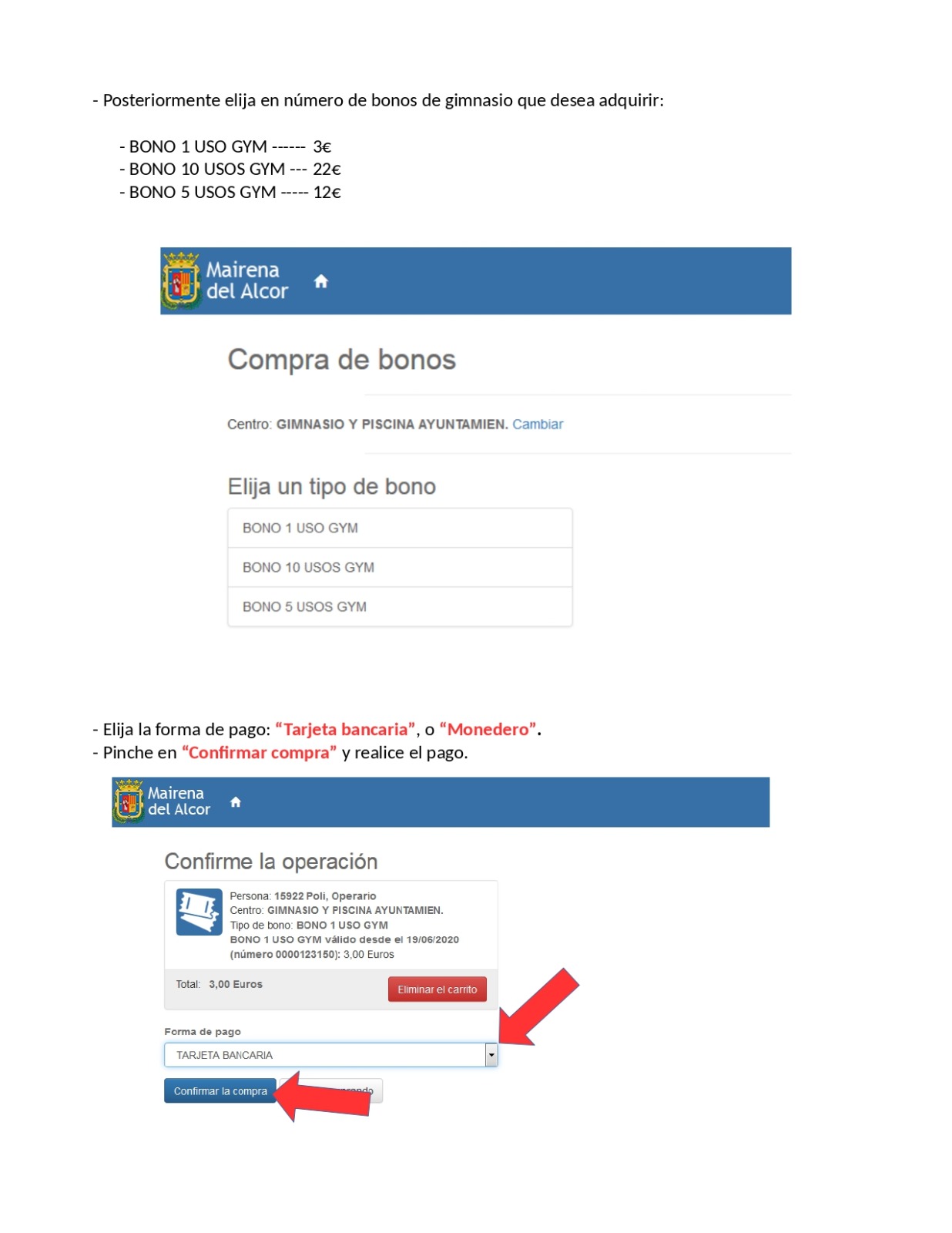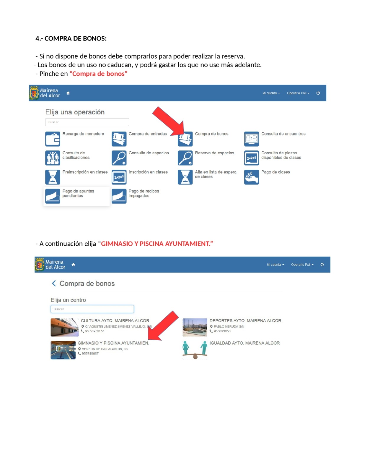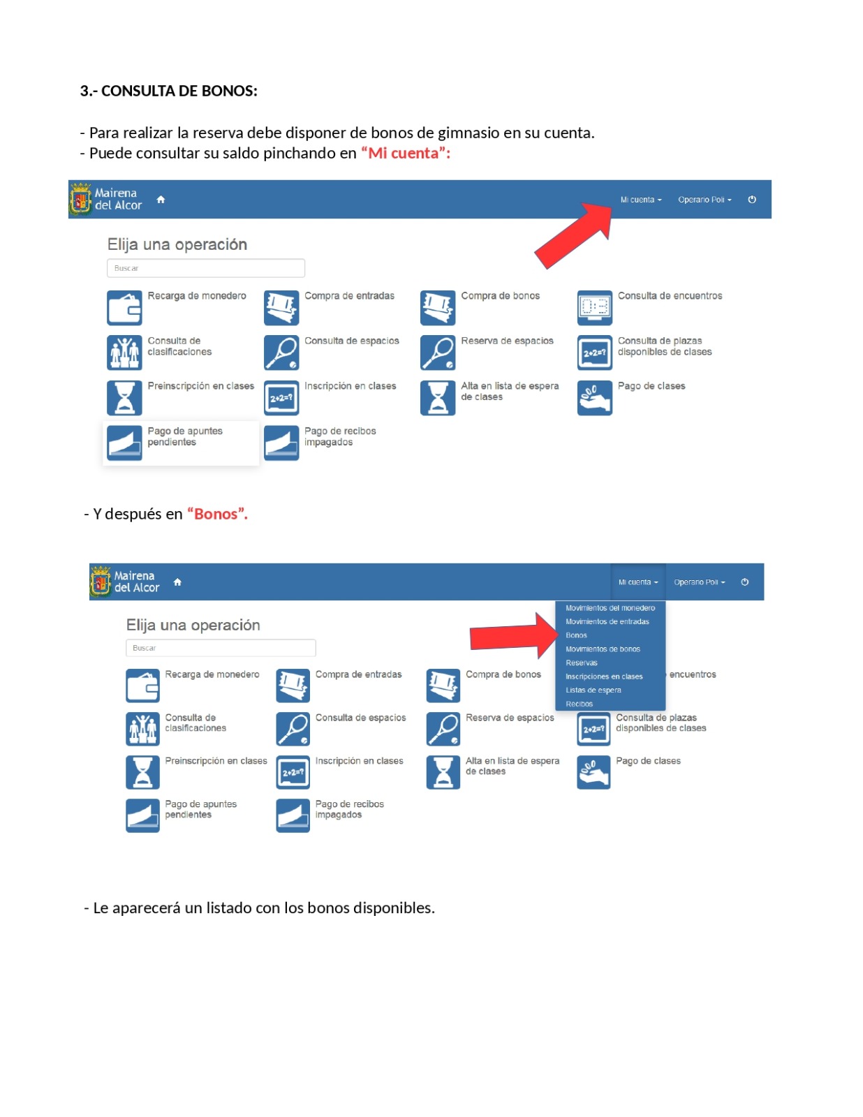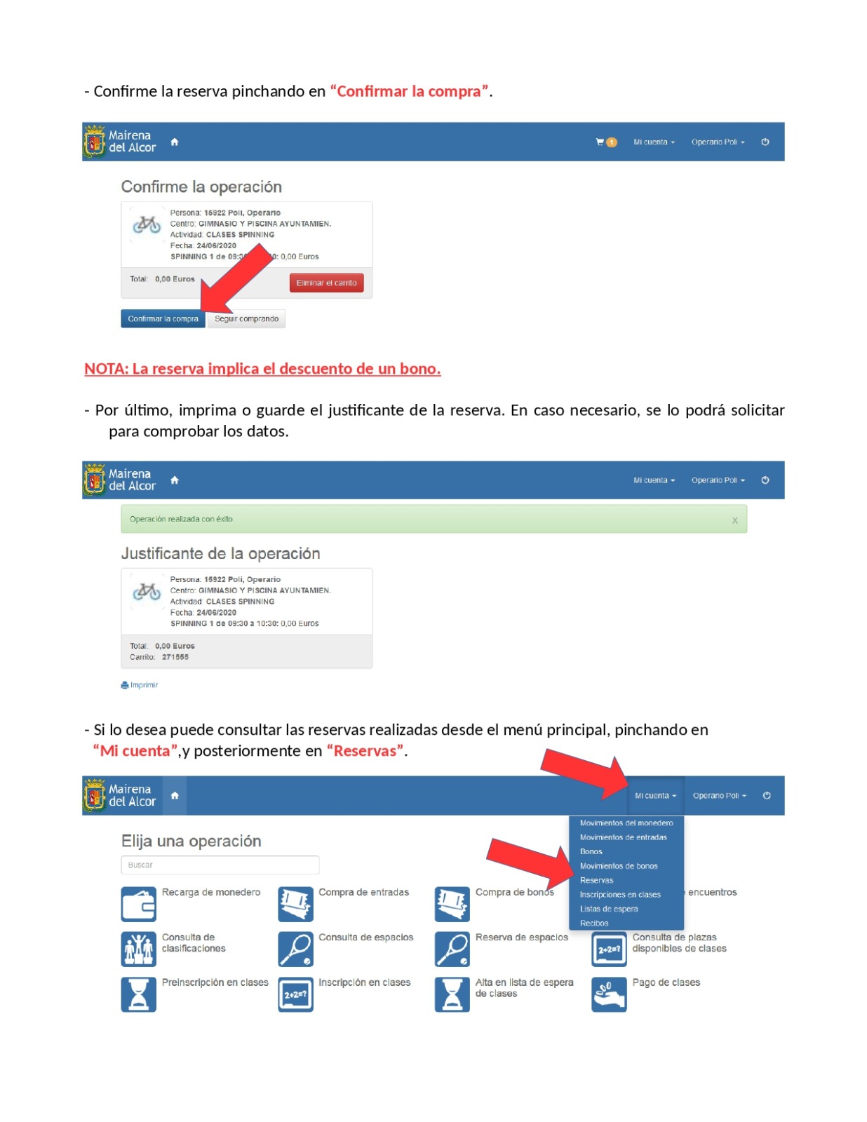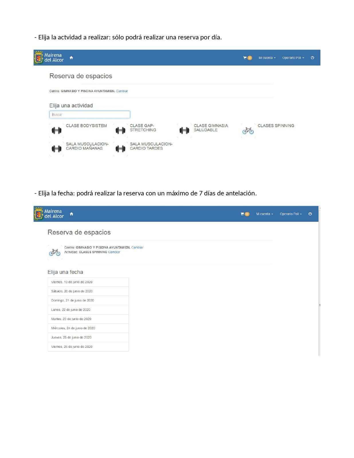 - Reserva y pago online de todas las actividades del gimnasio.