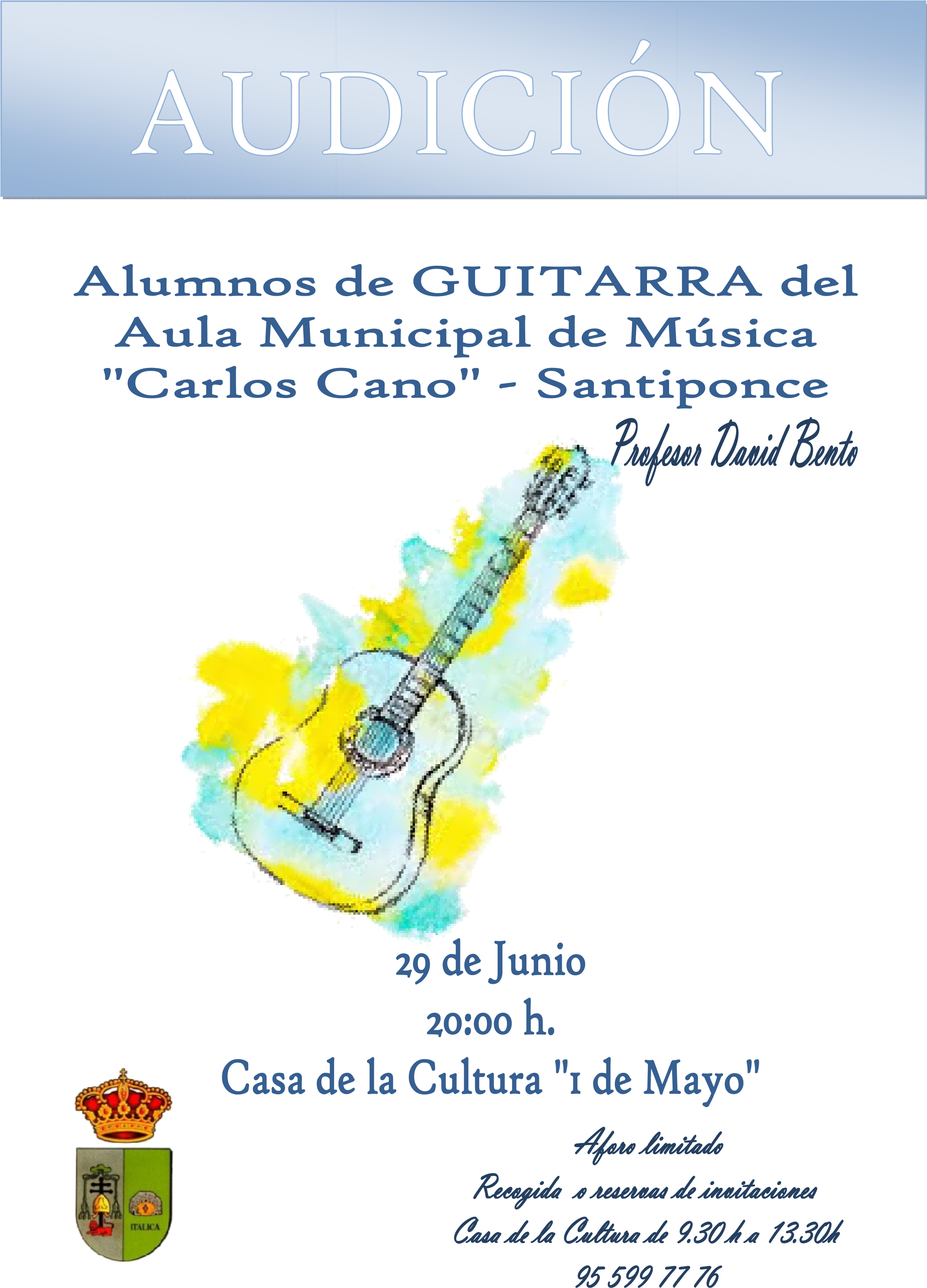 Aforo limitado. Recogida o reserva de invitaciones en la Casa de la Cultura de 9:30 a 13:30 h