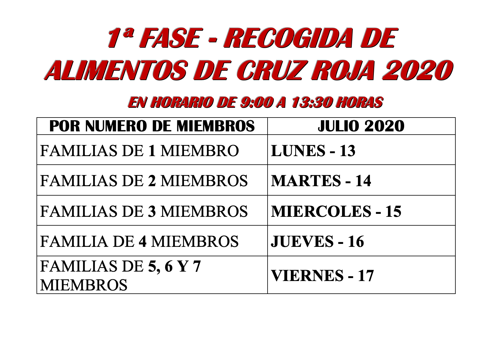 Desde el Ayuntamiento de La Puebla del Río informamos a la población cigarrera sobre el reparto de 6.500 kilos de alimentos correspondientes a la primera fase del Programa Cruz Roja 2020. La recogida tendrá lugar en el Edificio Municipal que se encuentra en la calle Cuenca s/n, frente al Estadio Cantarrana.