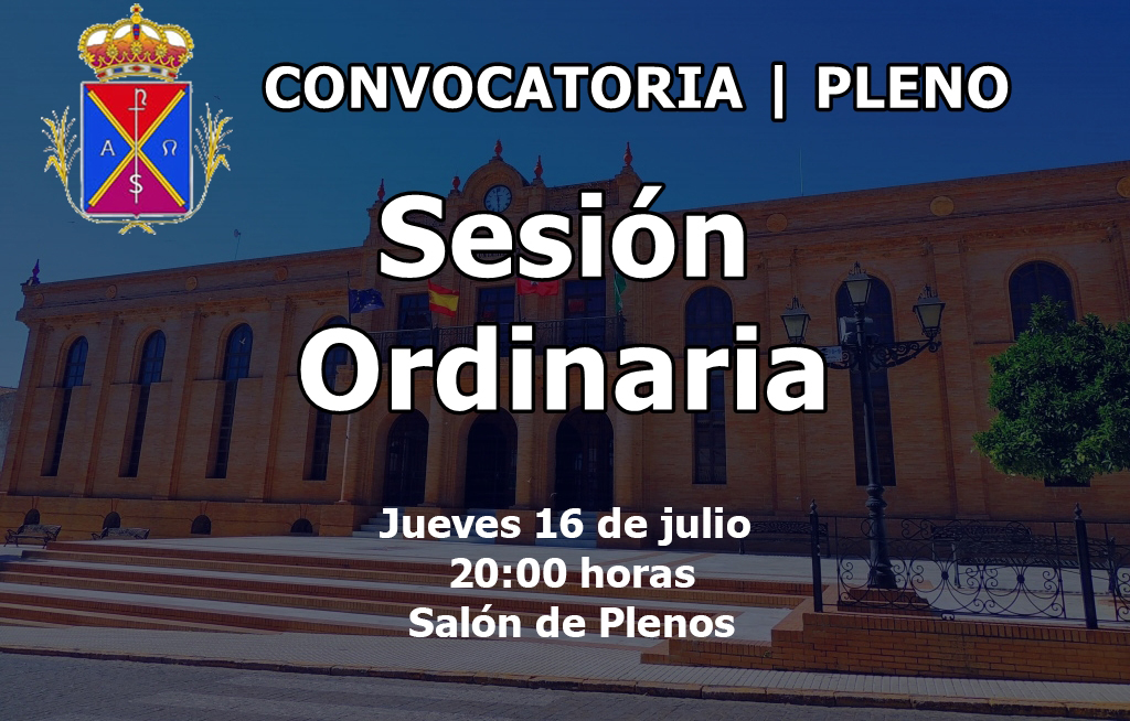 Este jueves, día 16 de julio, a las 20:00 horas en la Casa Consistorial, tendrá lugar una sesión ordinaria de pleno del Ayuntamiento de La Puebla del Río. El orden del día será el siguiente: