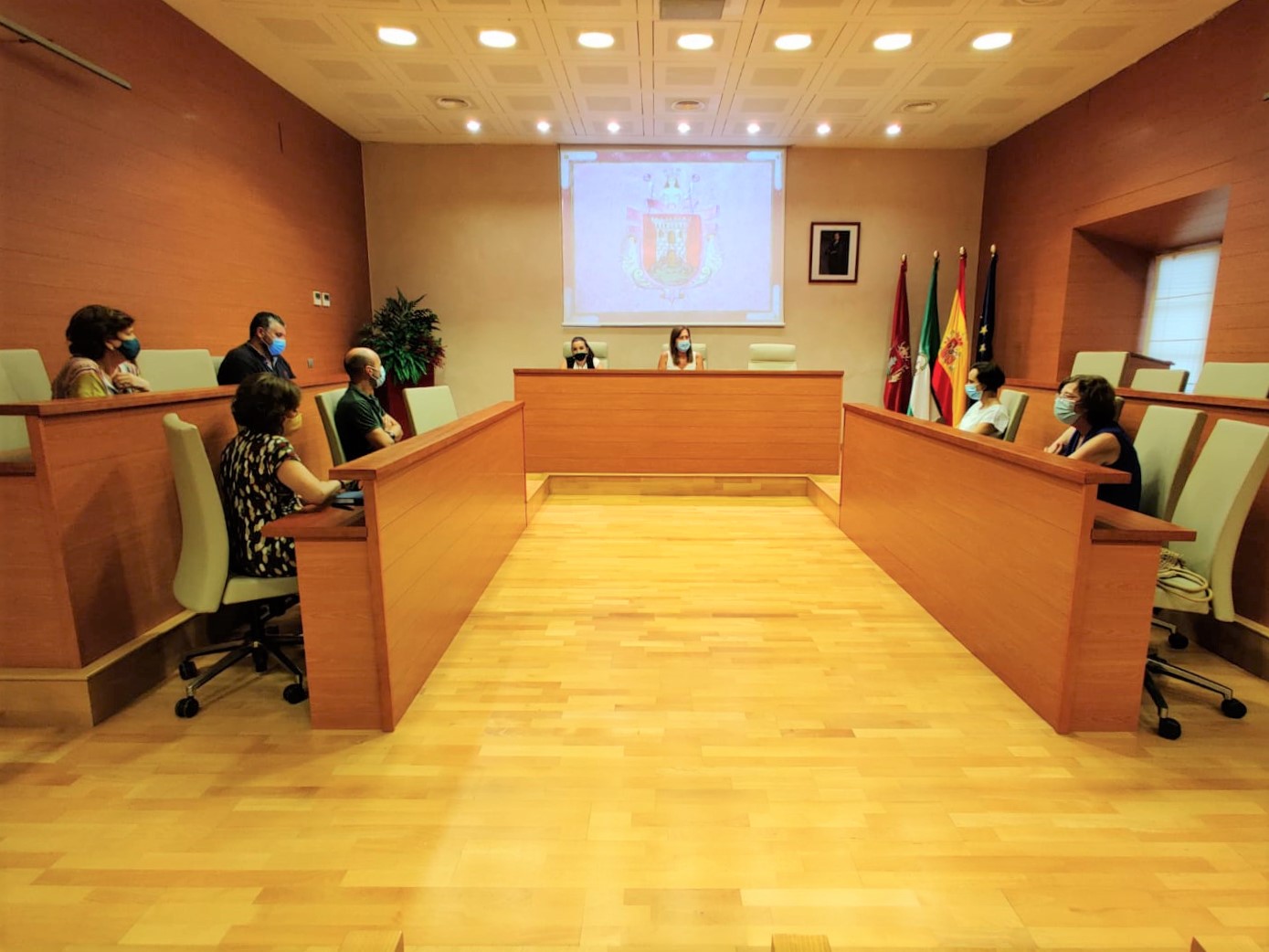 El Salón de Plenos del Ayuntamiento de Osuna, ha acogido en el día de hoy, 24 de julio, una reunión entre la alcaldesa de Osuna, Rosario Andújar, la delegada municipal de Educación, Ana María Lebrón, y los directores y directoras de los diferentes centros educativos de la localidad, para la organización del nuevo curso escolar y articular un protocolo de actuación, debido al riesgo de contagio del Covid-19, tras la dejación de responsabilidades por parte de la Junta de Andalucía.