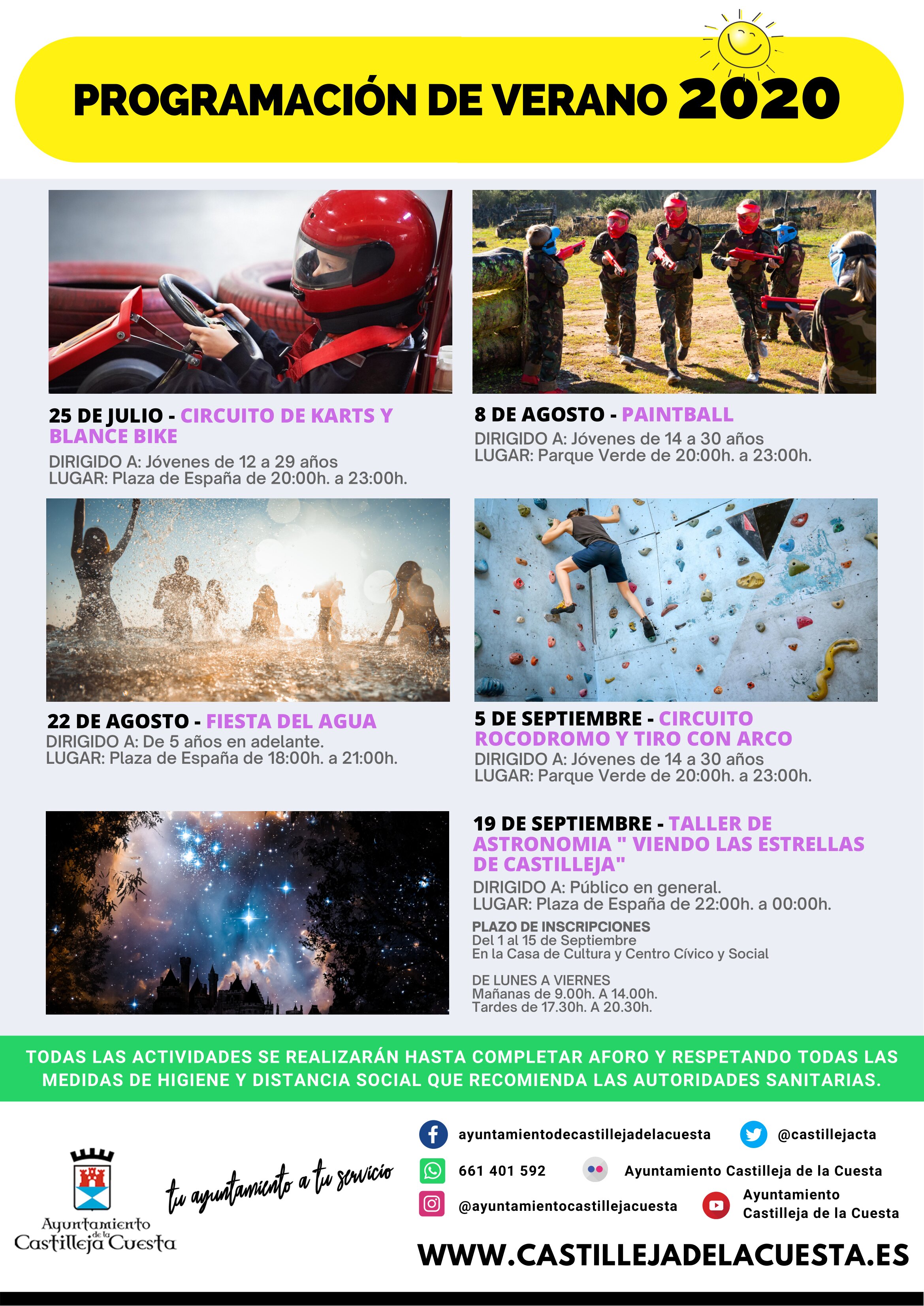 Fecha inicio Sáb, 25/07/2020 - 14:53 Fecha fin Sáb, 19/09/2020 - 14:53 Imágenes Ubicación Categoría evento Ciudadanía Mostrar en el carrusel de la sección No Más información http://www.castillejadelacuesta.es/es/actualidad/eventos/Programa-de-Actividade…