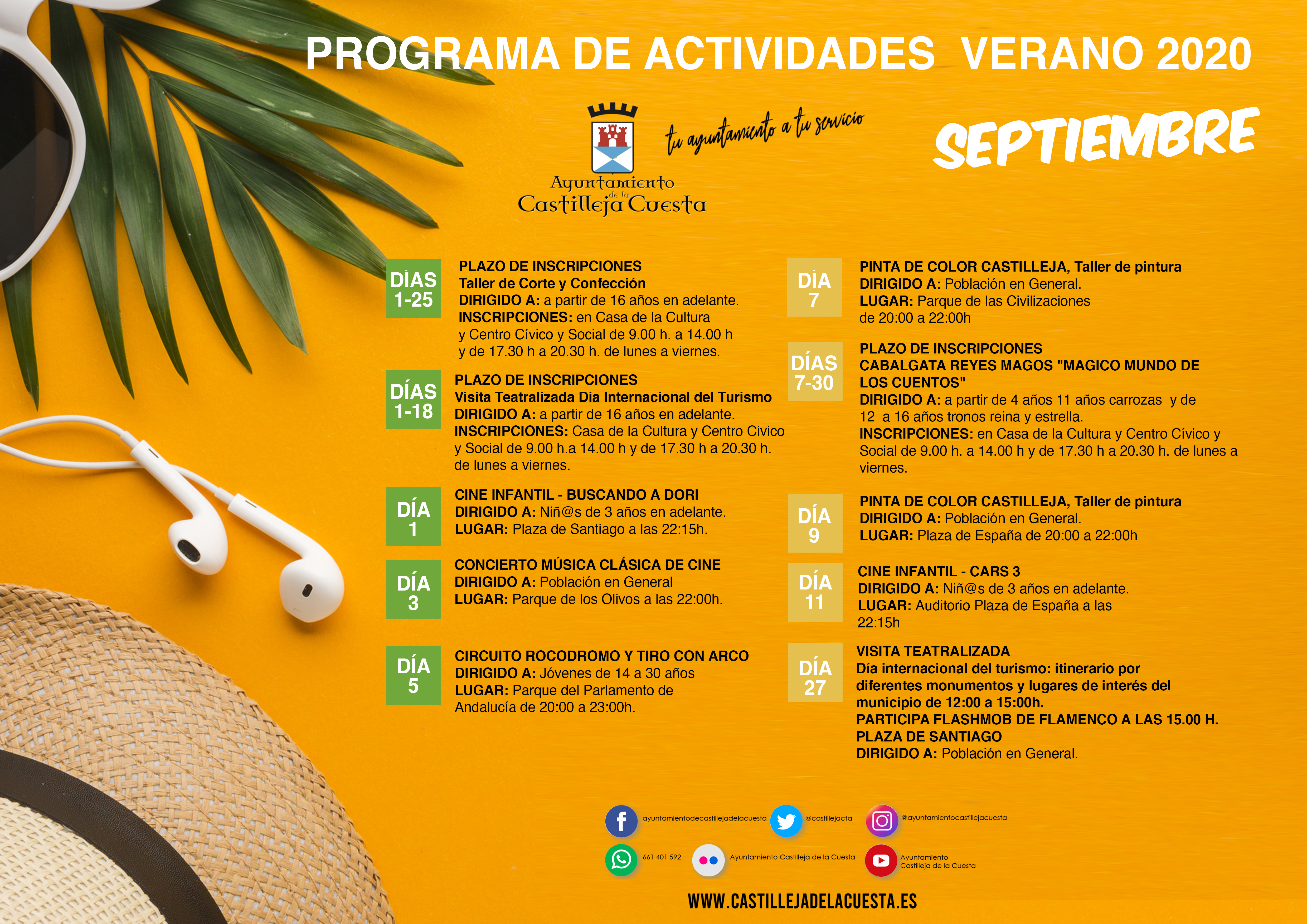 Fecha inicio Mar, 01/09/2020 - 12:26 Fecha fin Mié, 30/09/2020 - 12:26 Imágenes Ubicación Categoría evento Ciudadanía Mostrar en el carrusel de la sección No Más información http://www.castillejadelacuesta.es/es/actualidad/eventos/Programa-de-Verano-de-…