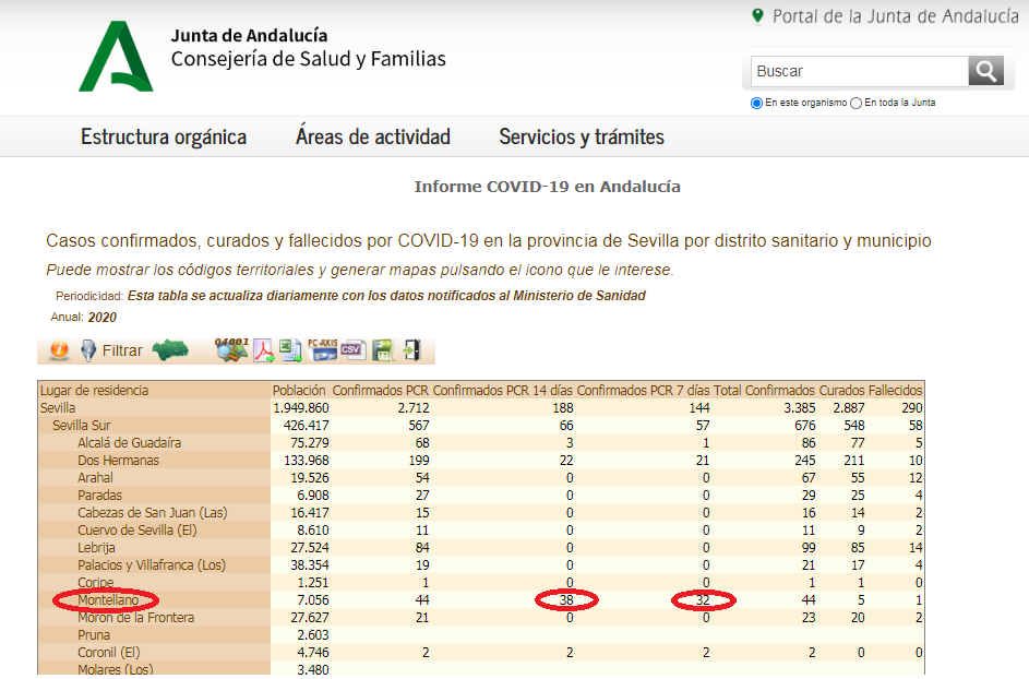 #COVID19 La Junta de Andalucía ha vuelto a hacer pública la actualización de los datos de contagiados por COVID-19 en nuestro municipio, siendo el número de afectados de 38 confirmados en los últimos 14 días y 32 en los últimos 7 días.