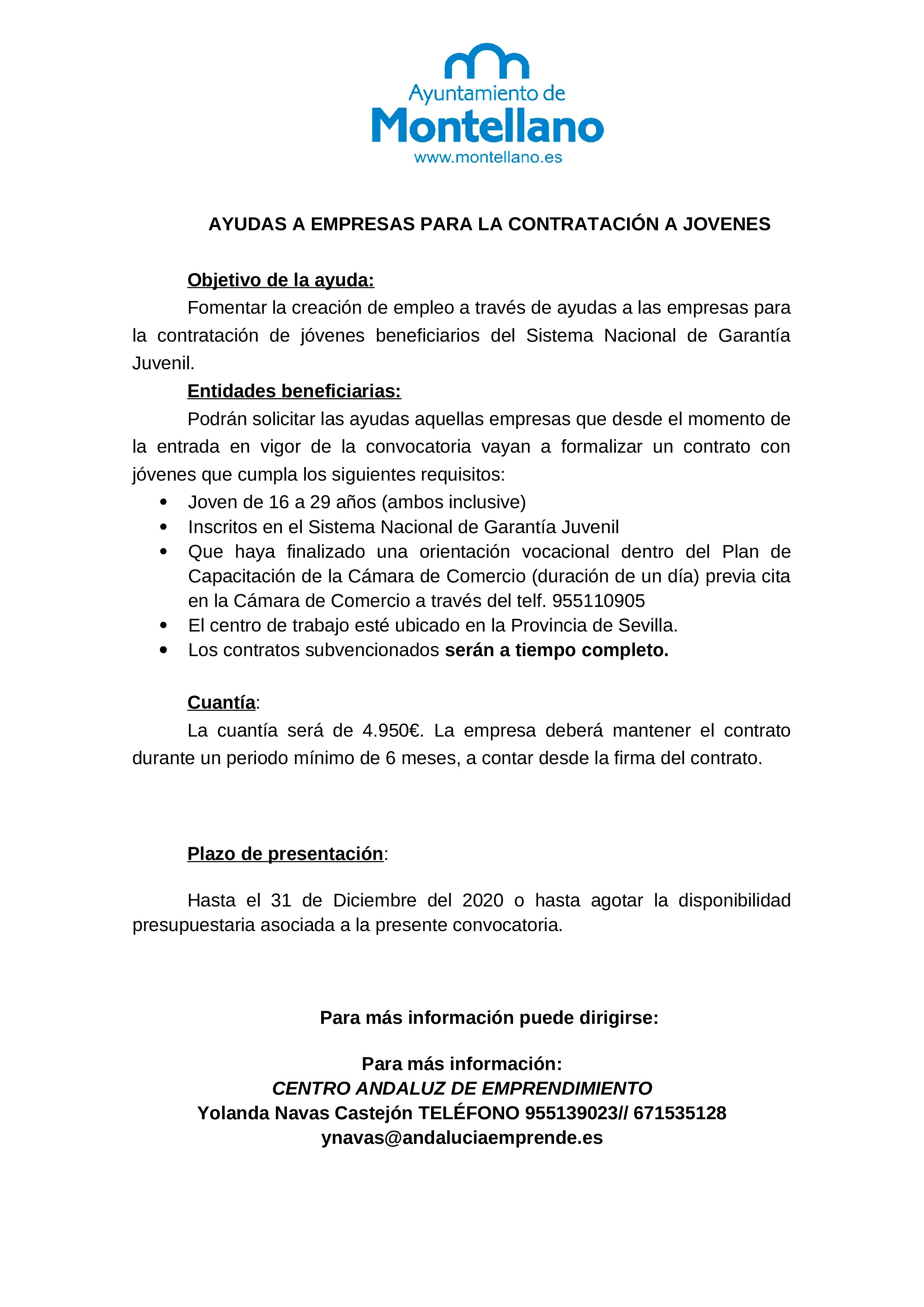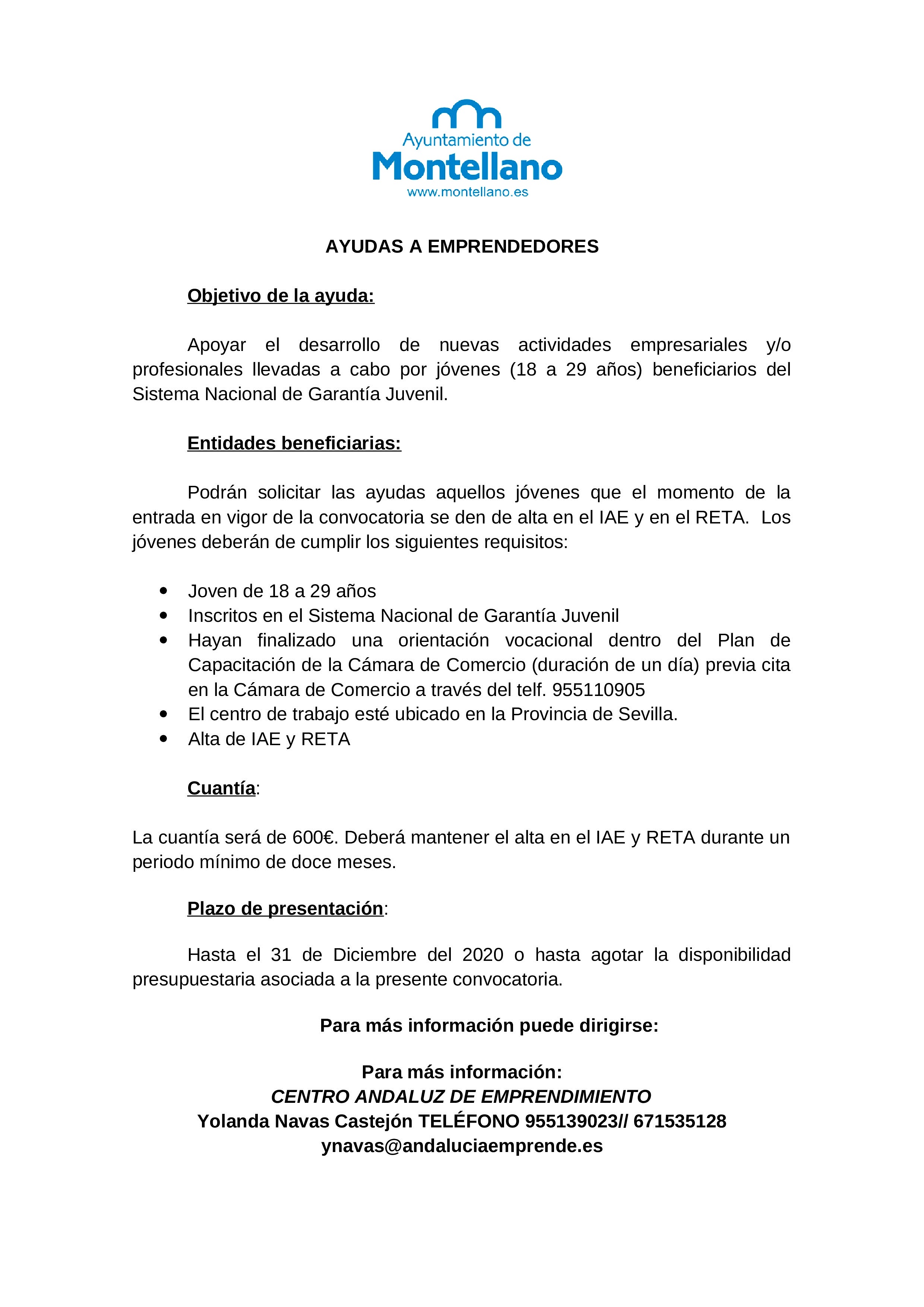 Para más información pueden preguntar en el CADE de Montellano.