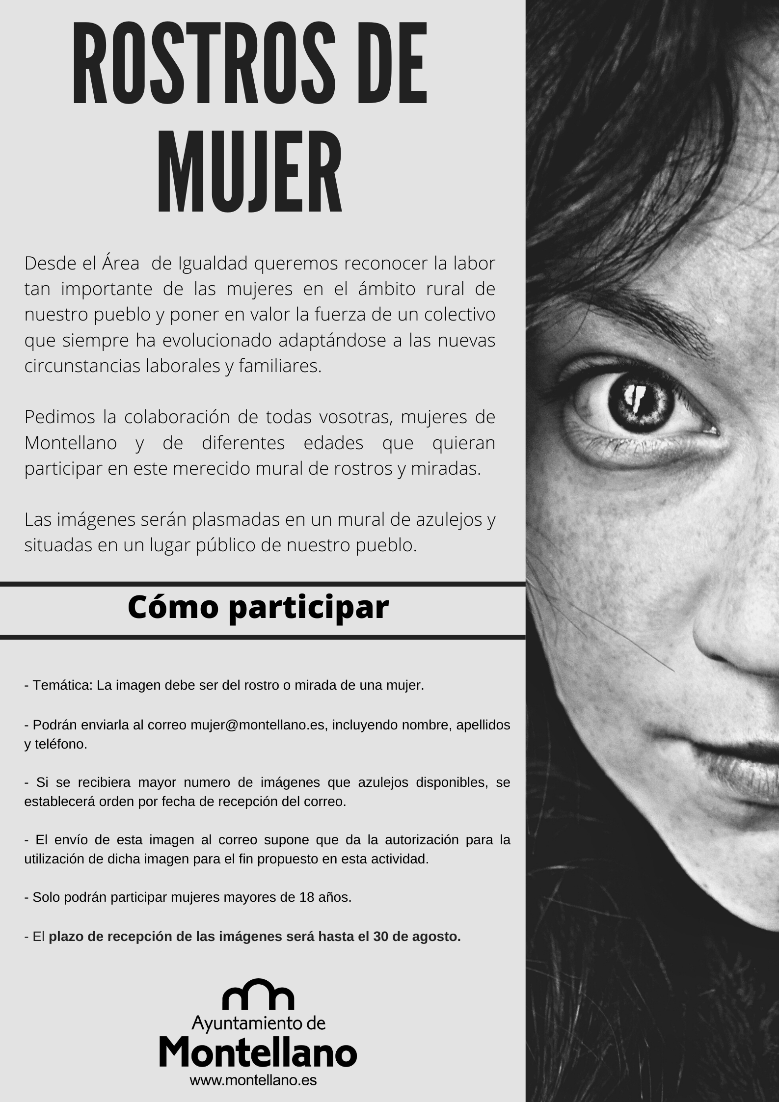 Pedimos la colaboración de todas vosotras, mujeres de Montellano y de diferentes edades que quieran participar en este merecido mural de rostros y miradas.