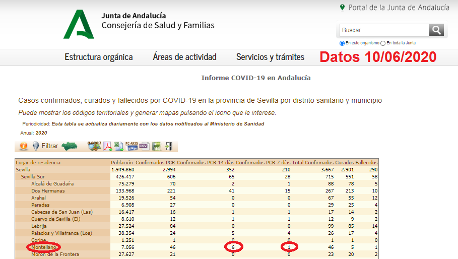 #COVID19 En el día de hoy se han vuelto a actualizar los datos de contagiados por COVID-19 en Montellano. Según publica la Junta de Andalucía en su web, son 6 los confirmados en los últimos 14 días y 1 en los últimos 7 días.