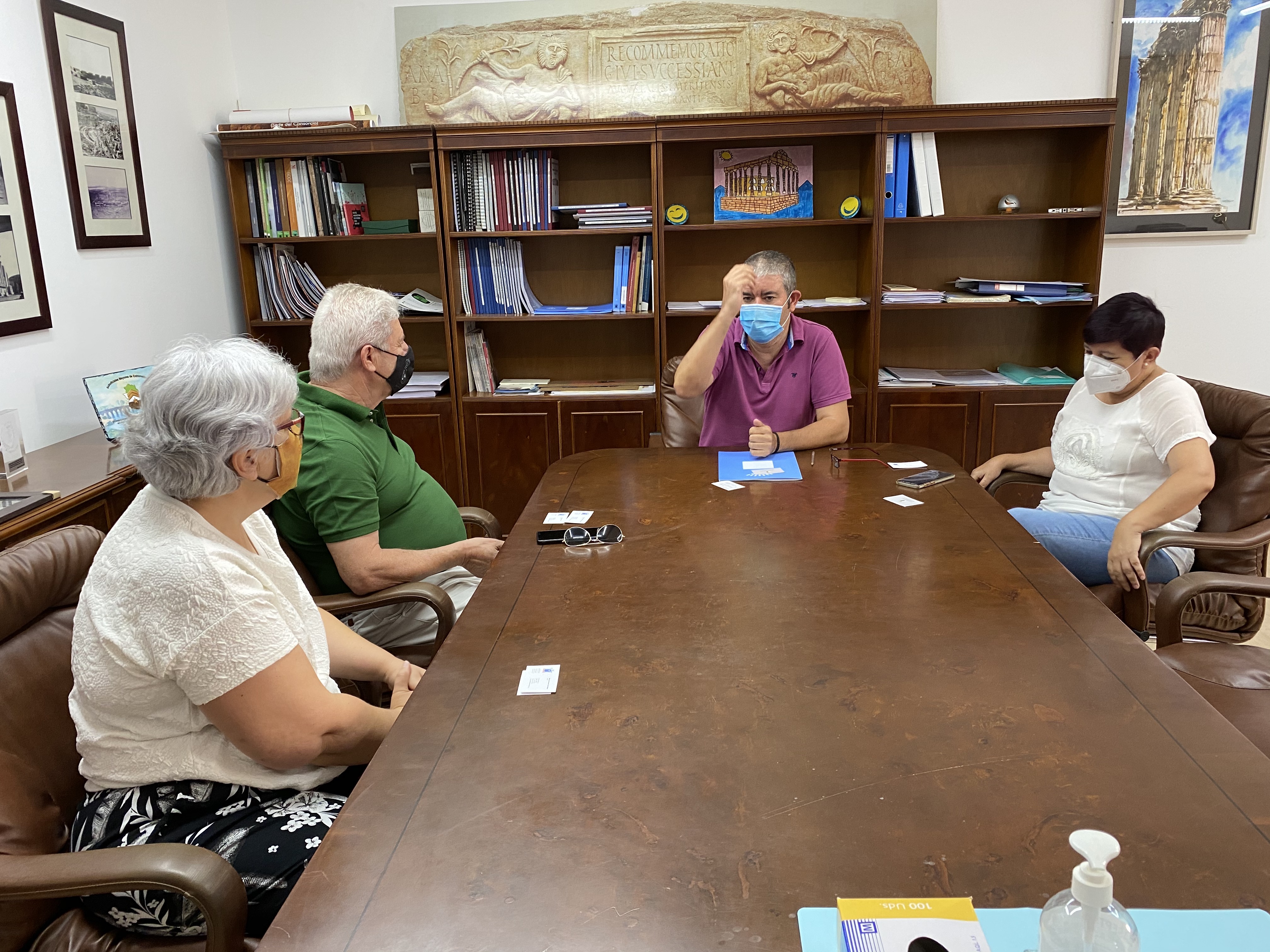 Tras el encuentro con los políticos, nuestros representantes se reunieron con la dirección del 'Consorcio Ciudad Monumental de Mérida' institución que gestiona el uso cultural de todo su patrimonio, en la misma Félix Palma y Carmen Trejo, Director y Gerente, explicaron el funcionamiento de este consorcio que gestiona para este año 2020 algo más de 7M de euros, el 75% del mismo obtenido de la venta directa de las entradas a los monumentos y espectáculos y da trabajo a casi mil personas en el sector turístico de la ciudad.
