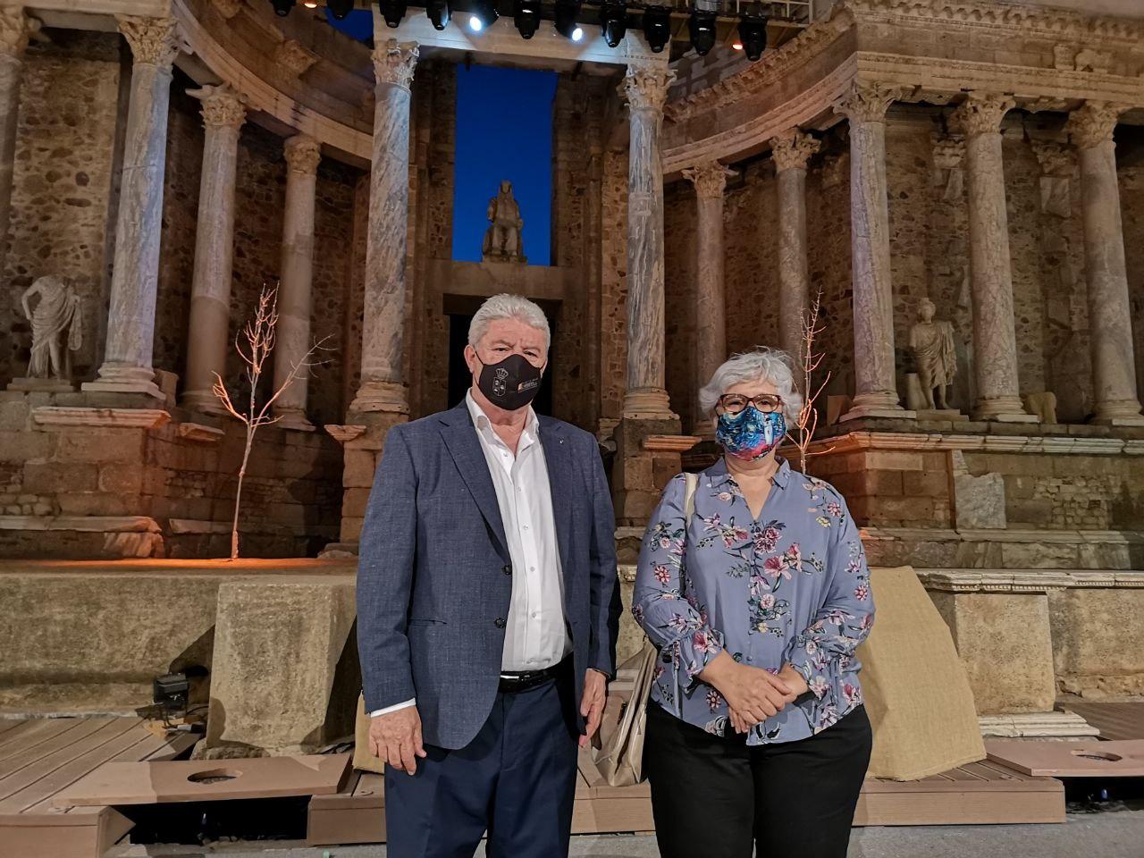 Aprovechando la invitación Festival de Teatro de Mérida, el Alcalde y la Delegada de Turismo se han desplazado hasta la capital emeritense para acudir al teatro y mantener reuniones con los responsables políticos de Turismo y Patrimonio y Desarrollo Local de la localidad, Pilar Amor y Julio Cesar Fuster (Alcalde en funciones), que les abrieron las puertas del Ayuntamiento para una futura mesa de trabajo donde desarrollar experiencias conjuntas.