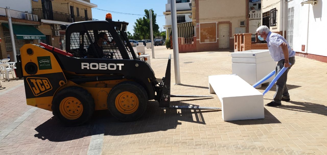 Esta mañana se ha procedido a la instalación de jardineras y bancos para completar la actuación que se ha realizado en la calle Pablo Iglesias.