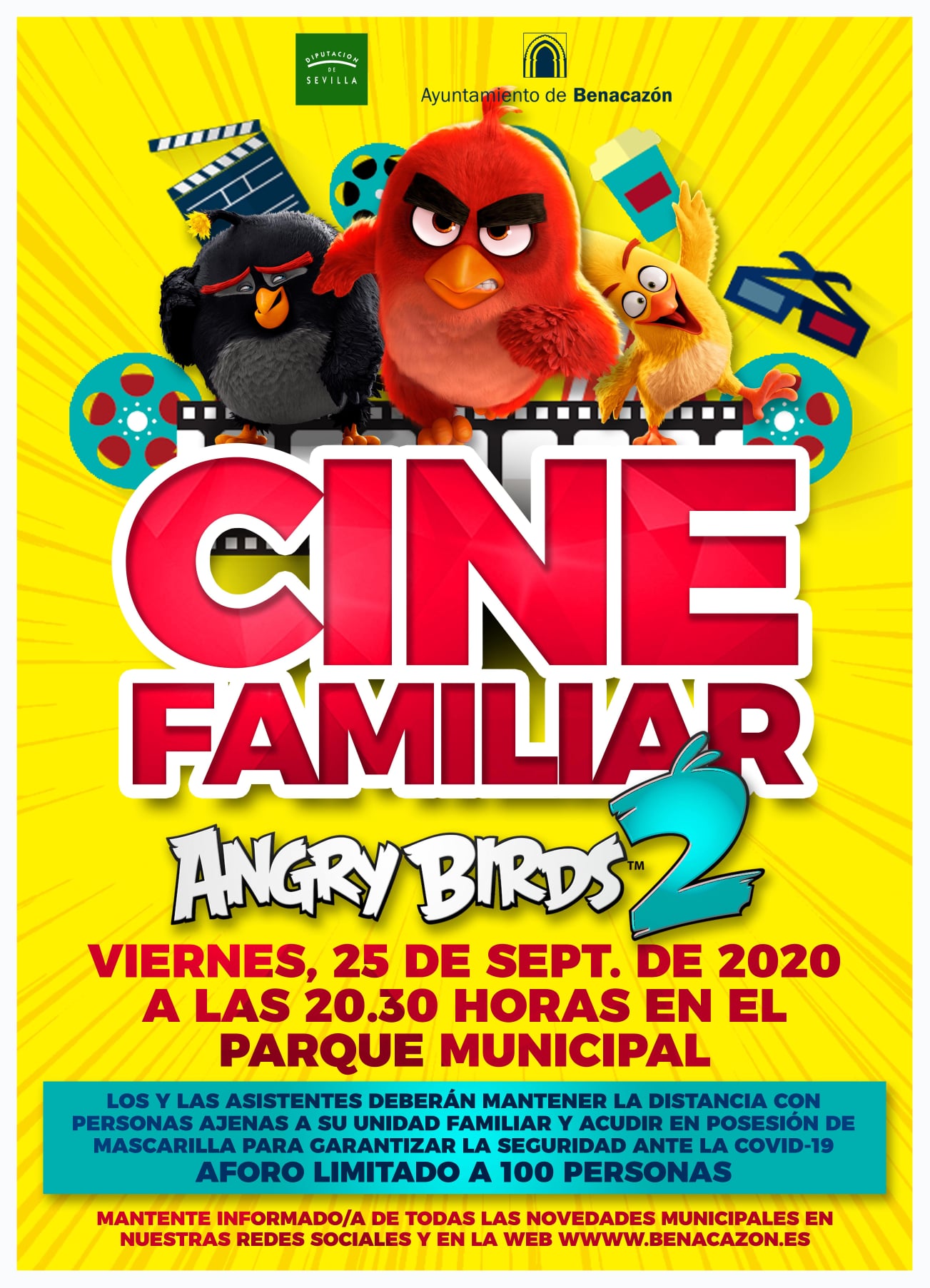 Desde el Ayuntamiento de Benacazón te informamos sobre la proyección de "Angry Birds 2", una actividad de acceso libre y gratuita organizada por nuestro Área municipal de Cultura, gracias a la financiación del Programa de Fomento y Cooperación Cultural de la Diputación de Sevilla. Este cine familiar tendrá lugar el viernes 25 de septiembre a las 20.30 horas en el Parque Municipal.