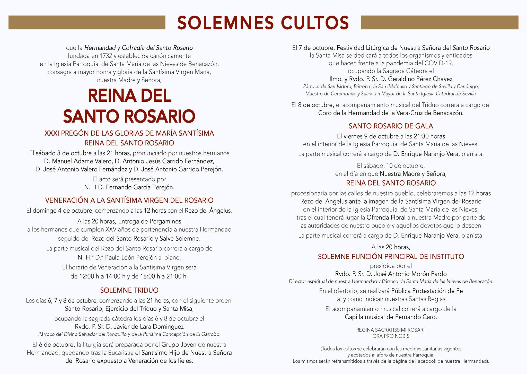 Desde el Ayuntamiento de Benacazón te mostramos el díptico de las Fiestas del Rosario de Benacazón 2020, un documento que ha sido impreso por la Diputación de Sevilla a través de la petición realizada por el Ayuntamiento de Benacazón.