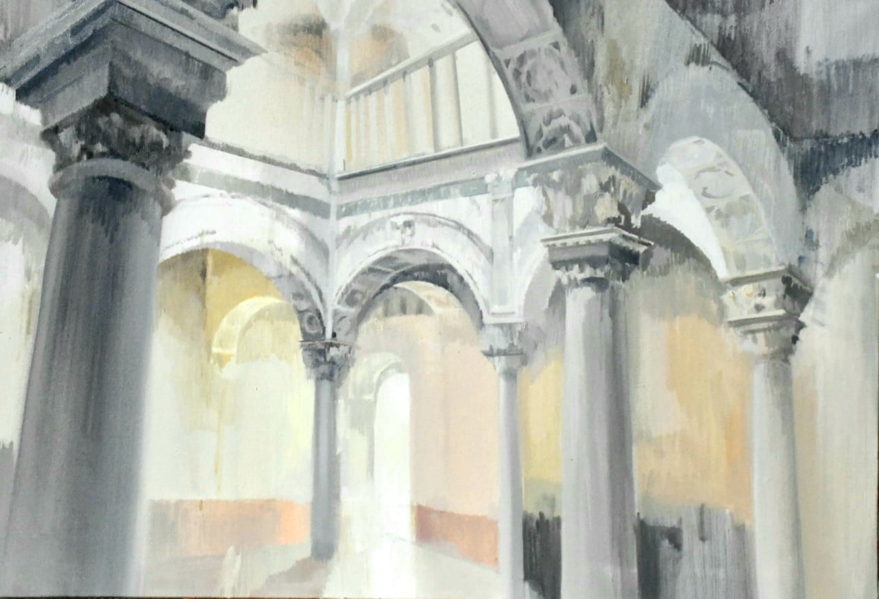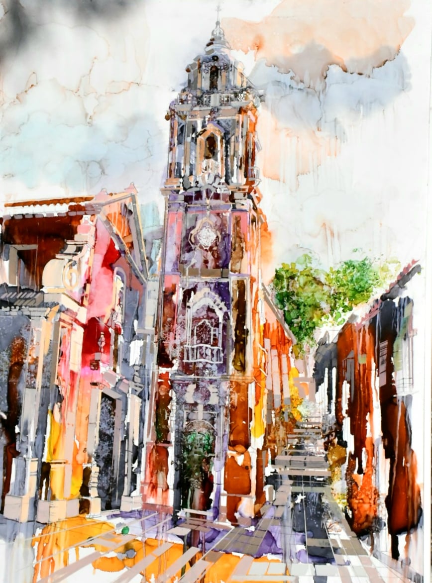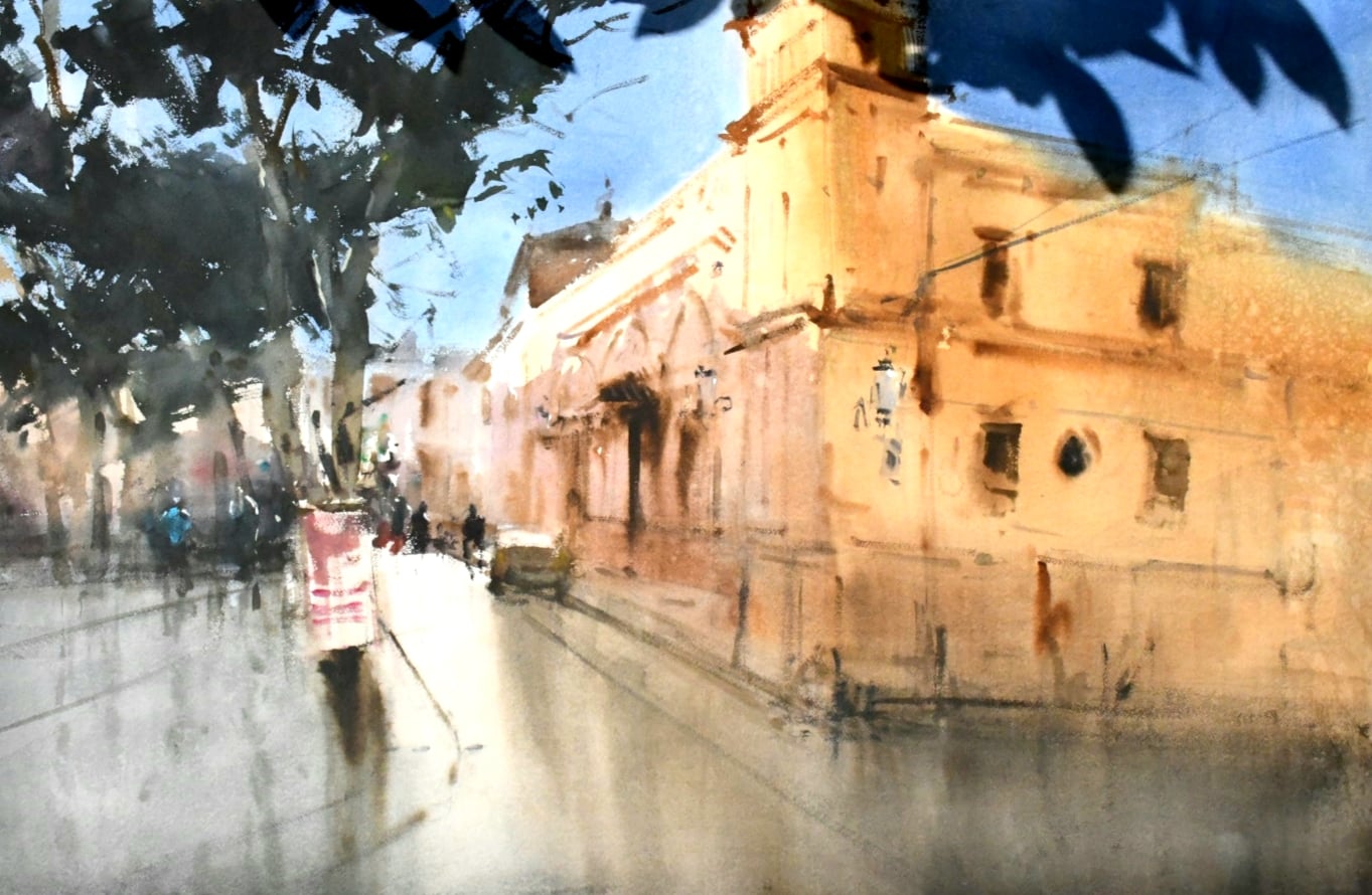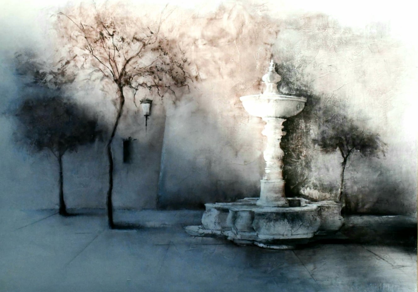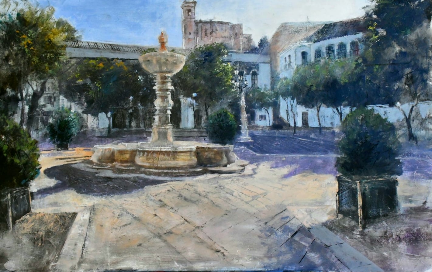 Con una obra en la que ha representado una imagen de la Plaza Mayor resaltando su fuente sobre el resto de elementos, utilizando tonos pasteles y carboncillo para destacar las sombras, se ha alzado con el primer premio esta pintora sevillana con un total de 67 puntos, seis de diferencia con el segundo clasificado.