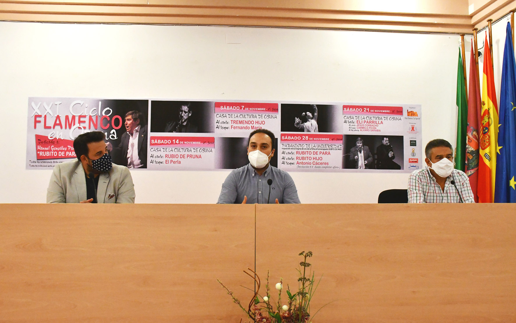 El delegado municipal de Cultura, Jesús Heredia, acompañado por el presidente de la Peña Flamenca La Siguiriya, ha presentado el XXI Ciclo de Flamenco en Osuna que se celebrará a lo largo del próximo mes de noviembre, organizado por la propia peña flamenca y patrocinado por el Ayuntamiento de la localidad.