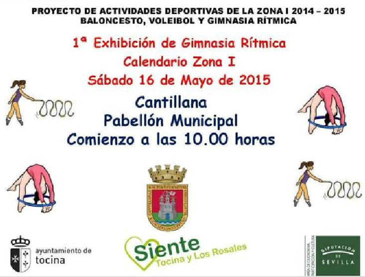El próximo sábado, 16 de mayo, a las 10:00 horas tendrá lugar la primera exhibición de gimnasia rítmica del Circuito Provincial en el Pabellón Polideportivo de Cantillana. Se trata de un circuito deportivo promovido por la Diputación de Sevilla, en el que colabora la Delegación de Deporte del Ayuntamiento de Cantillana. Asimismo, dicha actividad también se desarrollará el sábado 23 de mayo en San José de la Rinconada; el sábado 30 de mayo en Brenes; y el sábado 6 de junio en Tocina.
