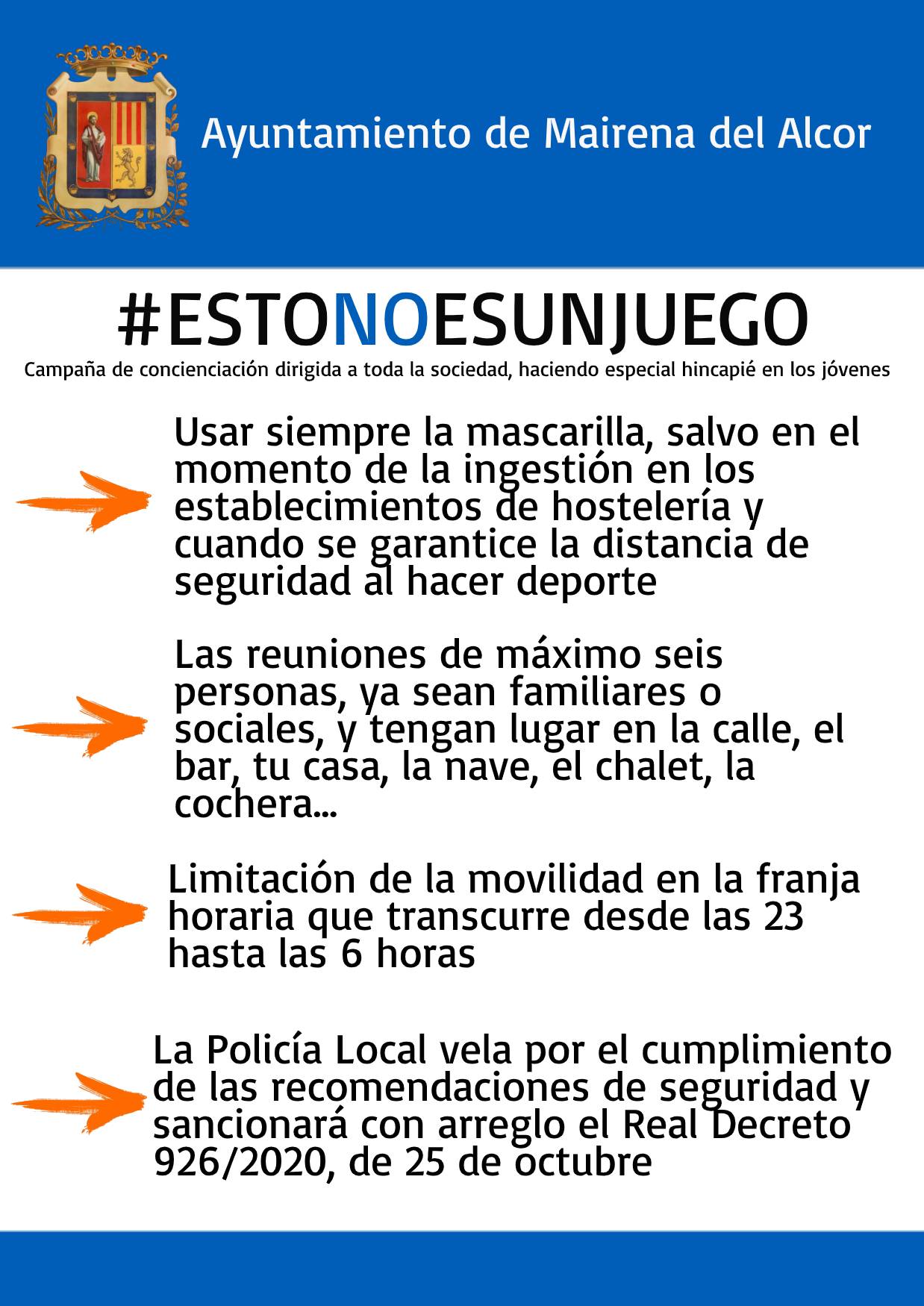 Imagen Imágenes Ubicación Categoría noticia Salud Mostrar en el carrusel de la sección No Fecha Mar, 27/10/2020 - 07:53 Más información http://www.mairenadelalcor.es/es/actualidad/noticias/ESTONOESUNJUEGO/