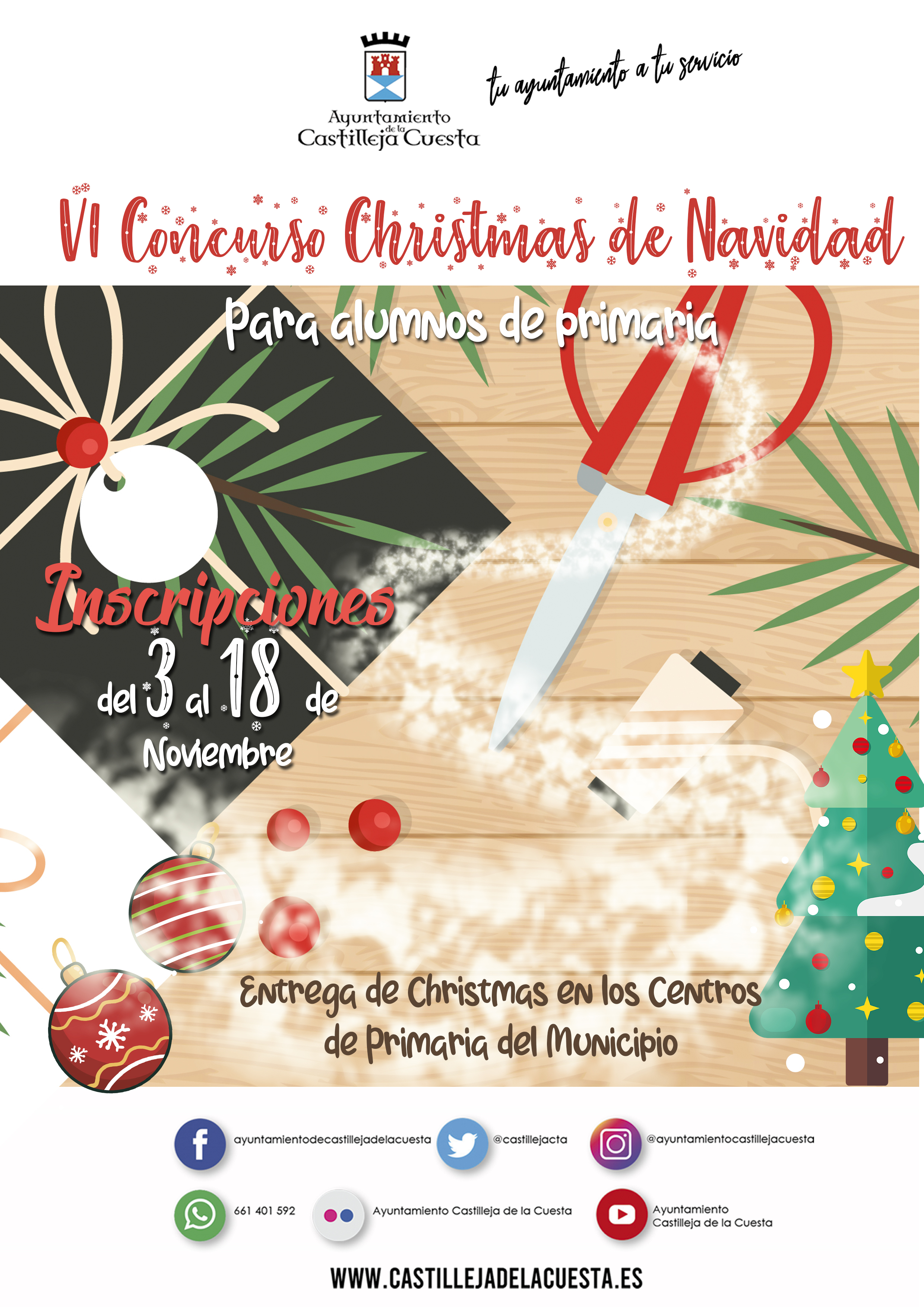Fecha inicio Mar, 03/11/2020 - 14:36 Fecha fin Mié, 18/11/2020 - 14:36 Imágenes Ubicación Categoría evento Ciudadanía Mostrar en el carrusel de la sección No Más información http://www.castillejadelacuesta.es/es/actualidad/eventos/VI-Concurso-de-Christm…